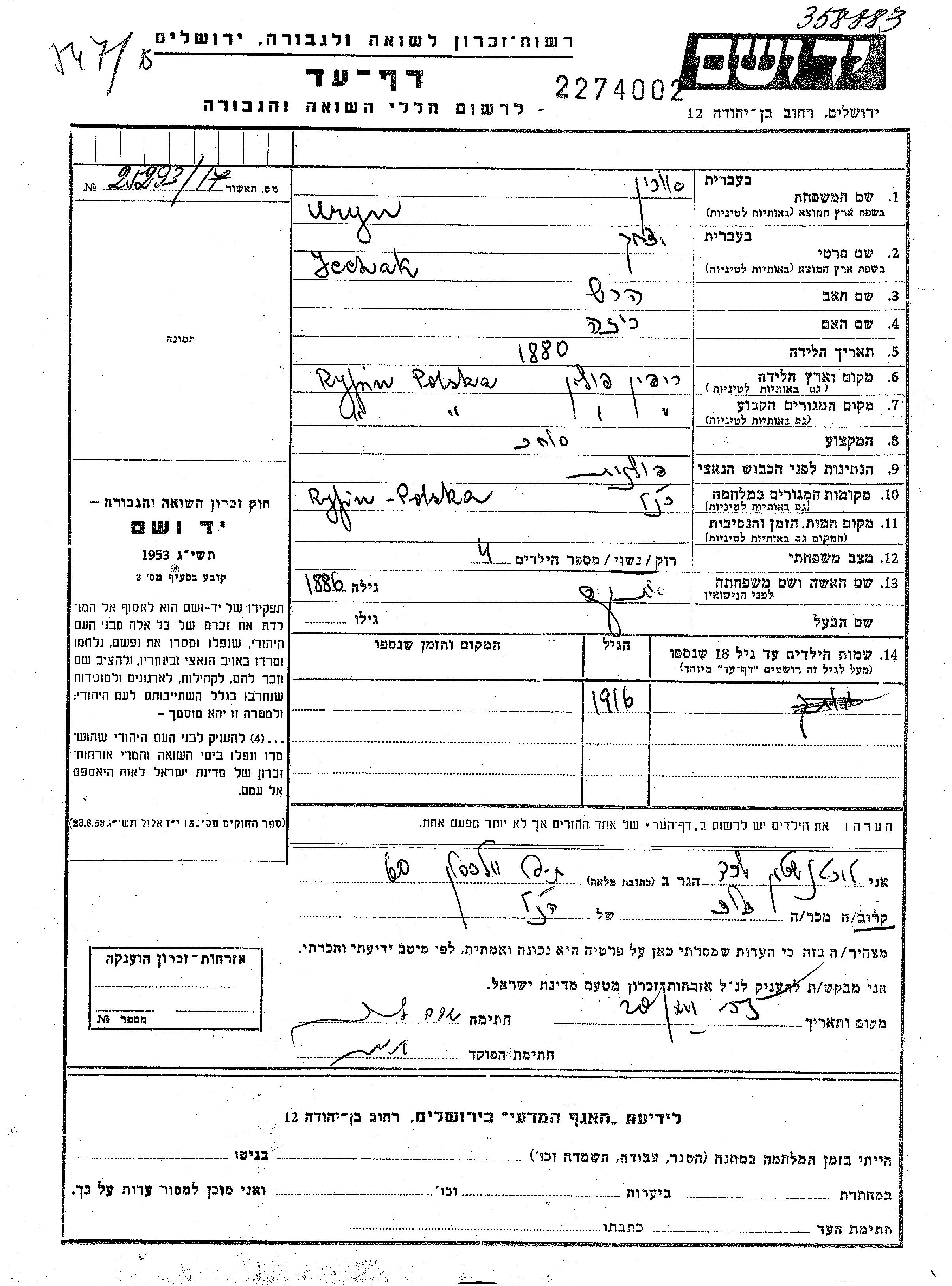 Uryn Ycchak 1880 Rypin, פולין דף-עד