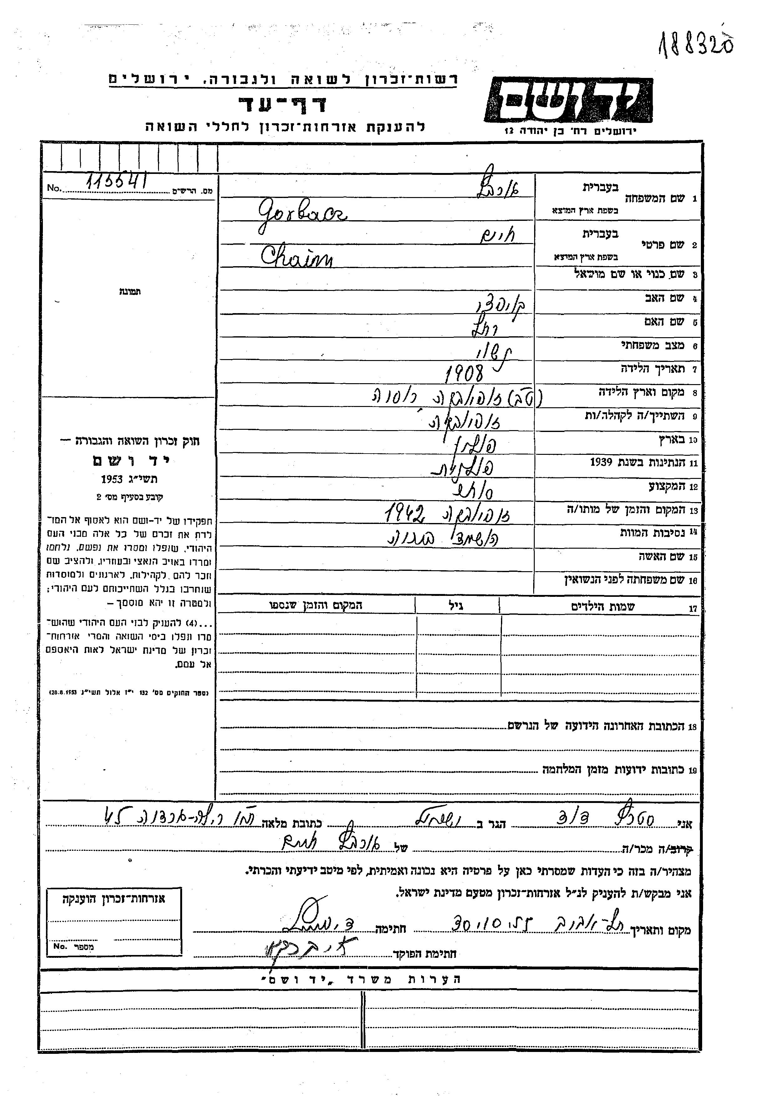 Gorbacz חיים 1908 Zofjówka, פולין דף-עד