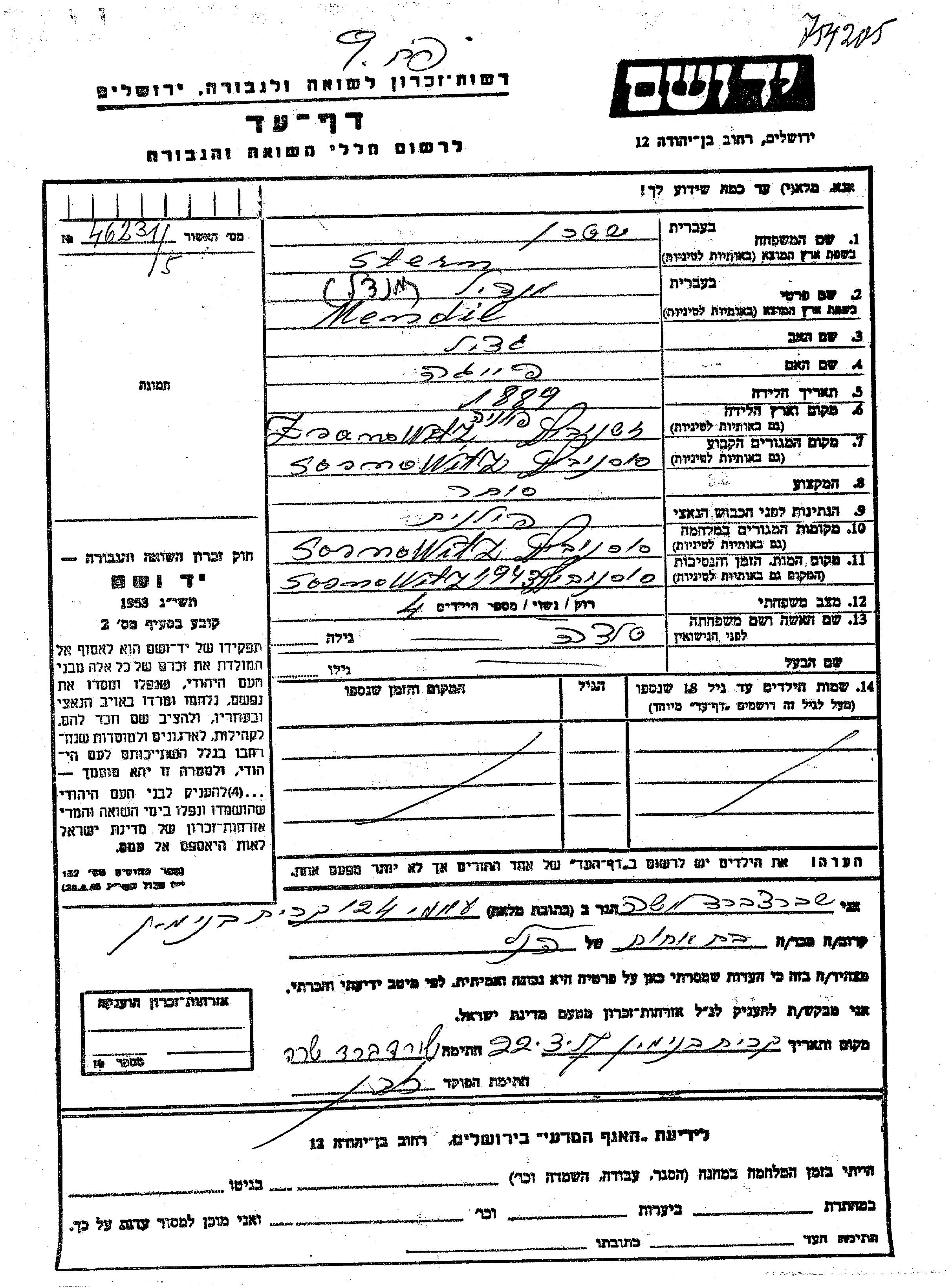 חיפוש שם מוסר דף העד. חיפוש לפי כל שם פרטי, כולל כינוי או שם חיבה