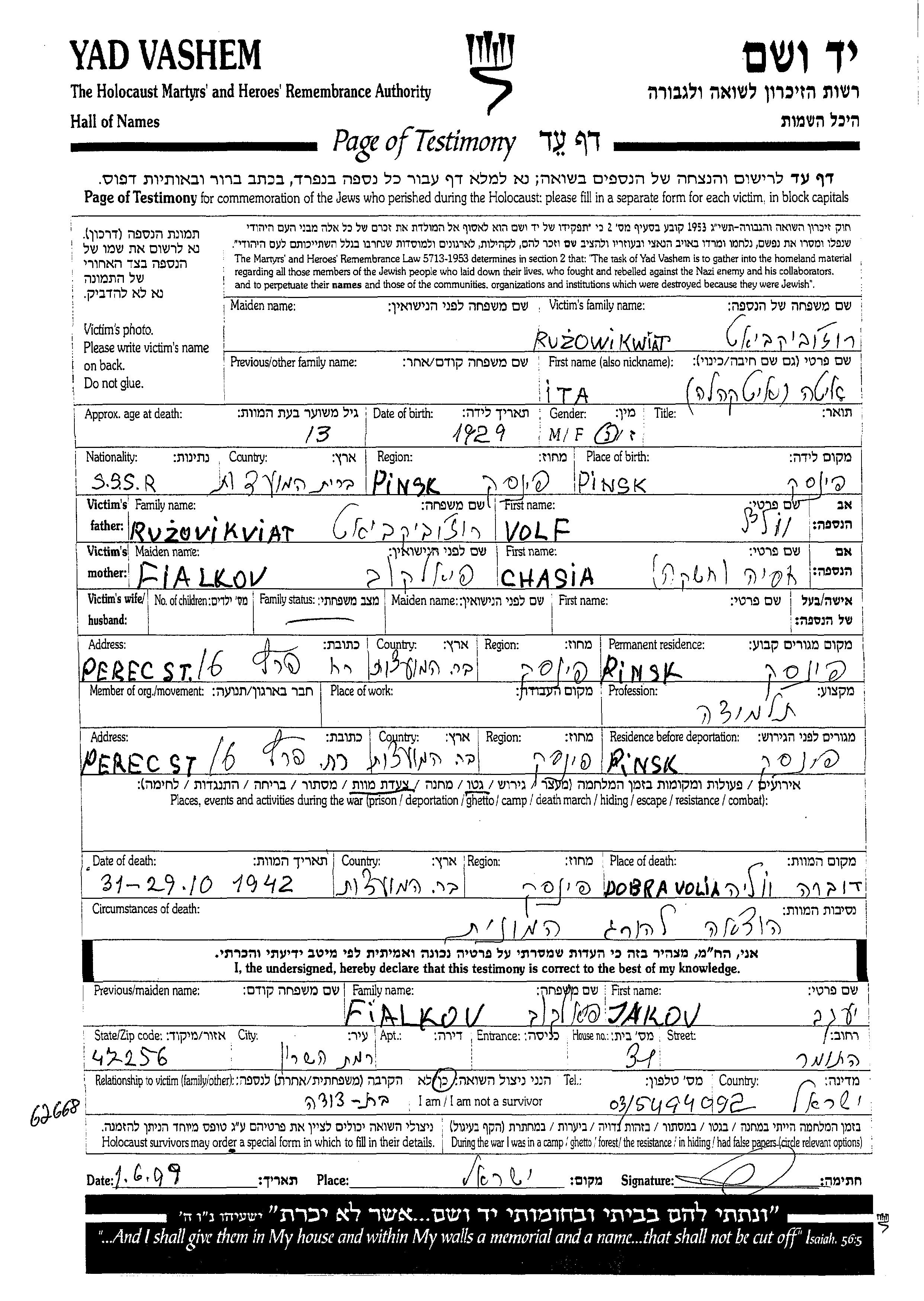 יד ושם - המפעל להנצחת השמות בדפי עד