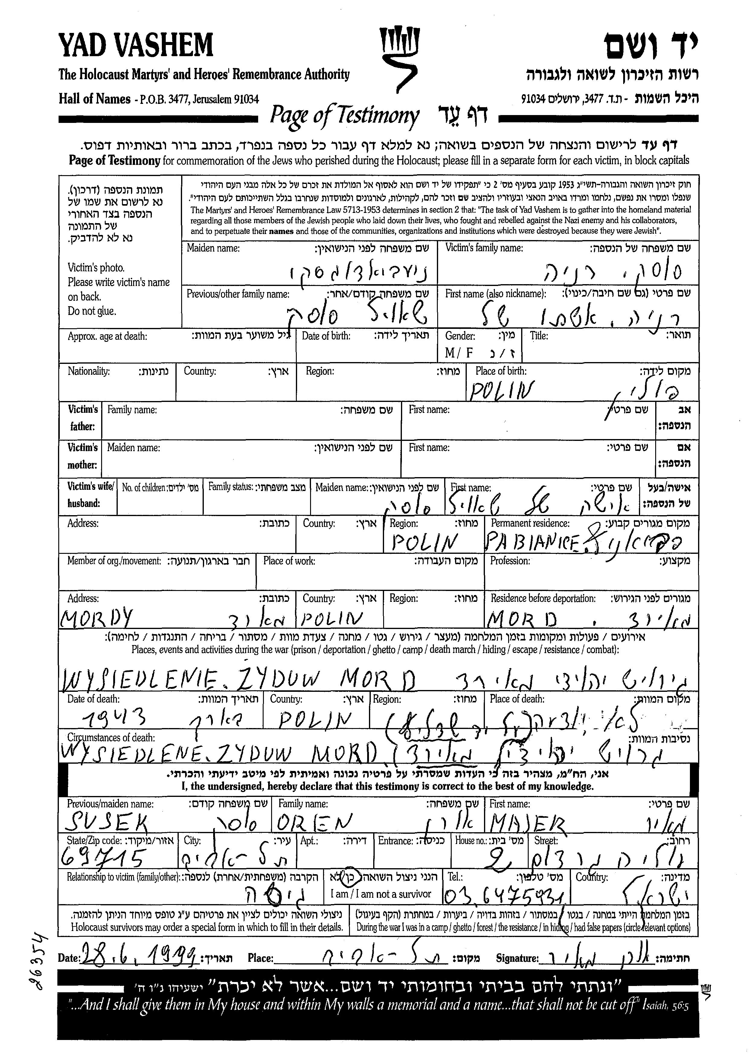 יד ושם - המפעל להנצחת השמות בדפי עד