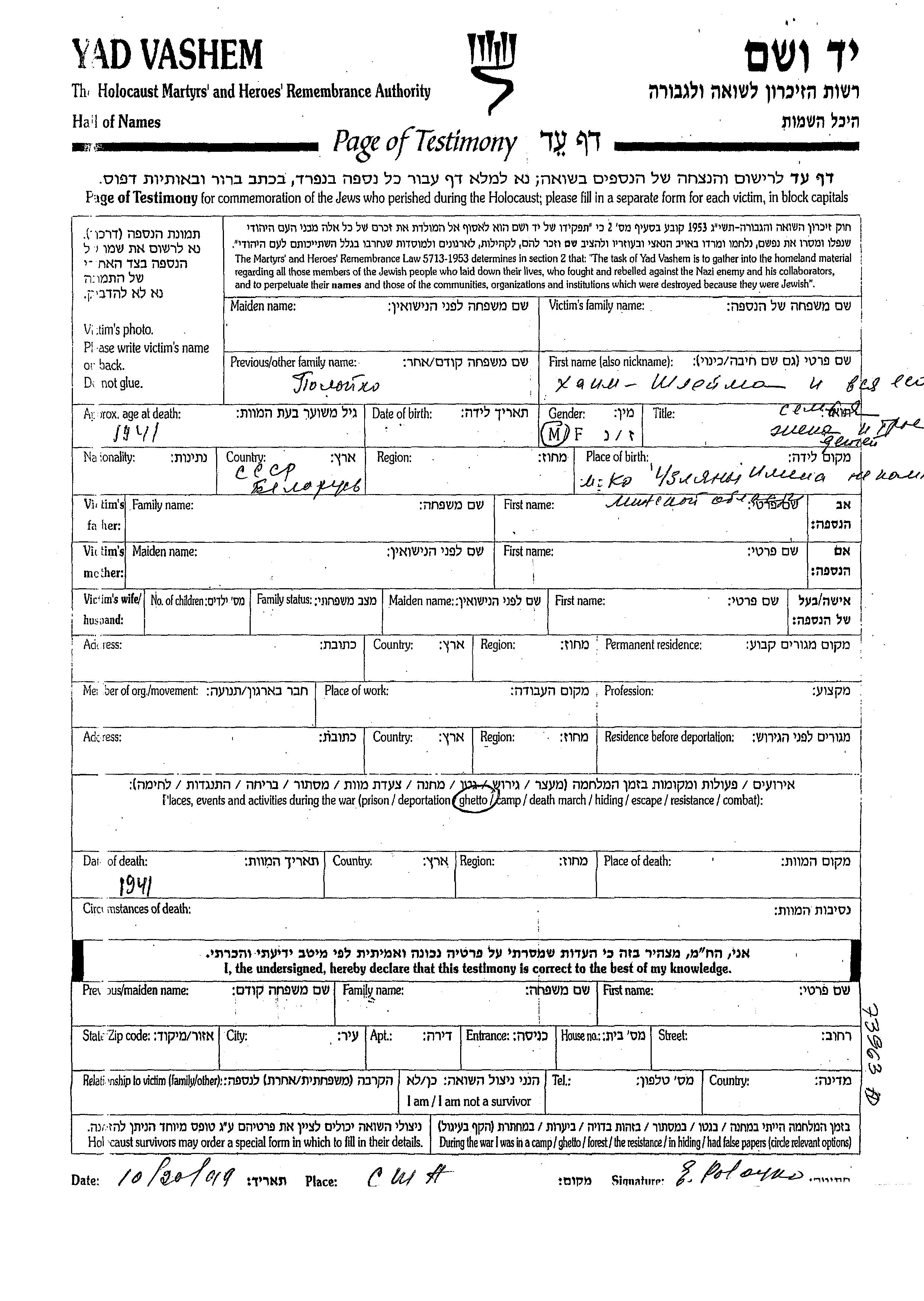 יד ושם - המפעל להנצחת השמות בדפי עד