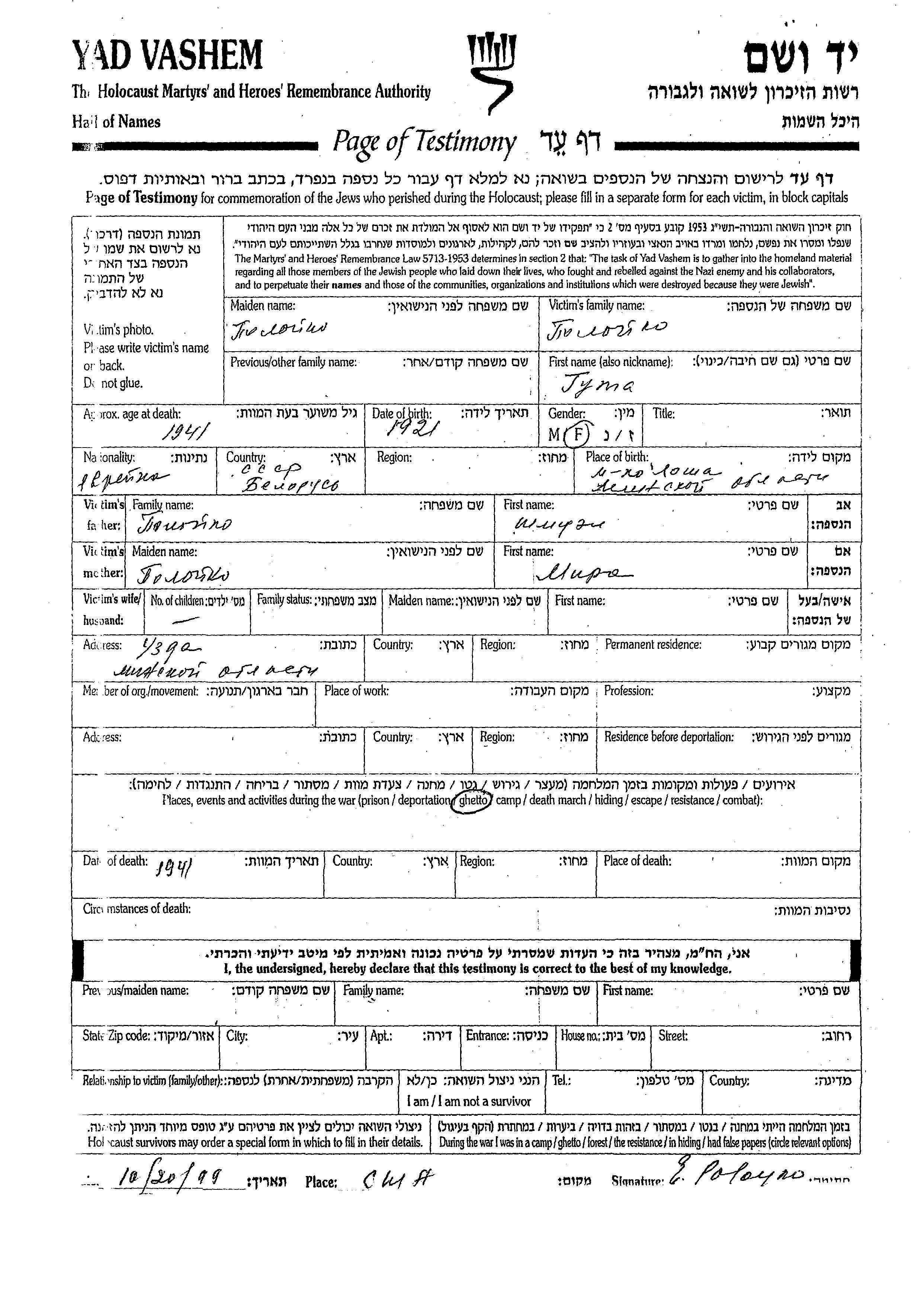 יד ושם - המפעל להנצחת השמות בדפי עד