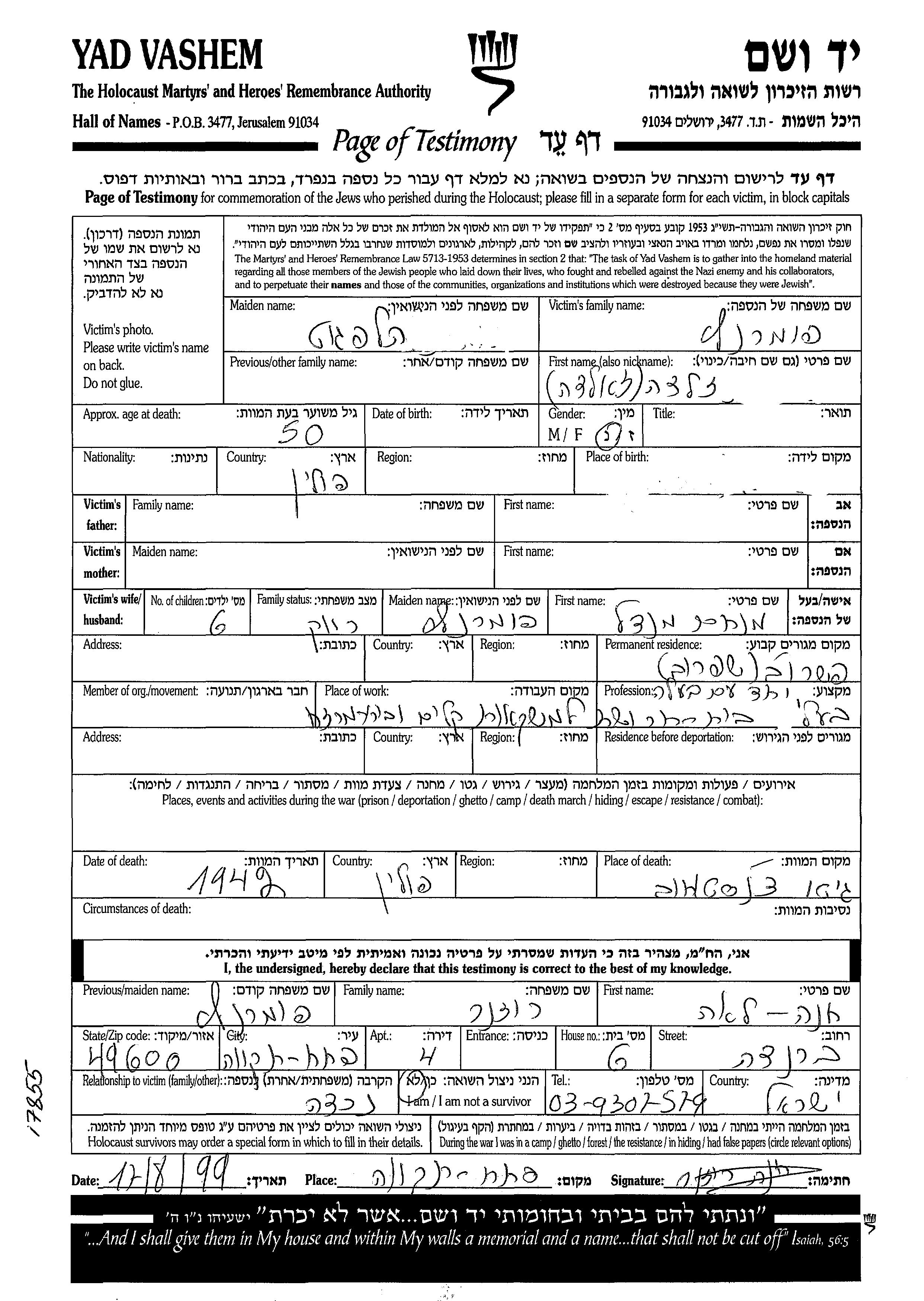 יד ושם - המפעל להנצחת השמות בדפי עד