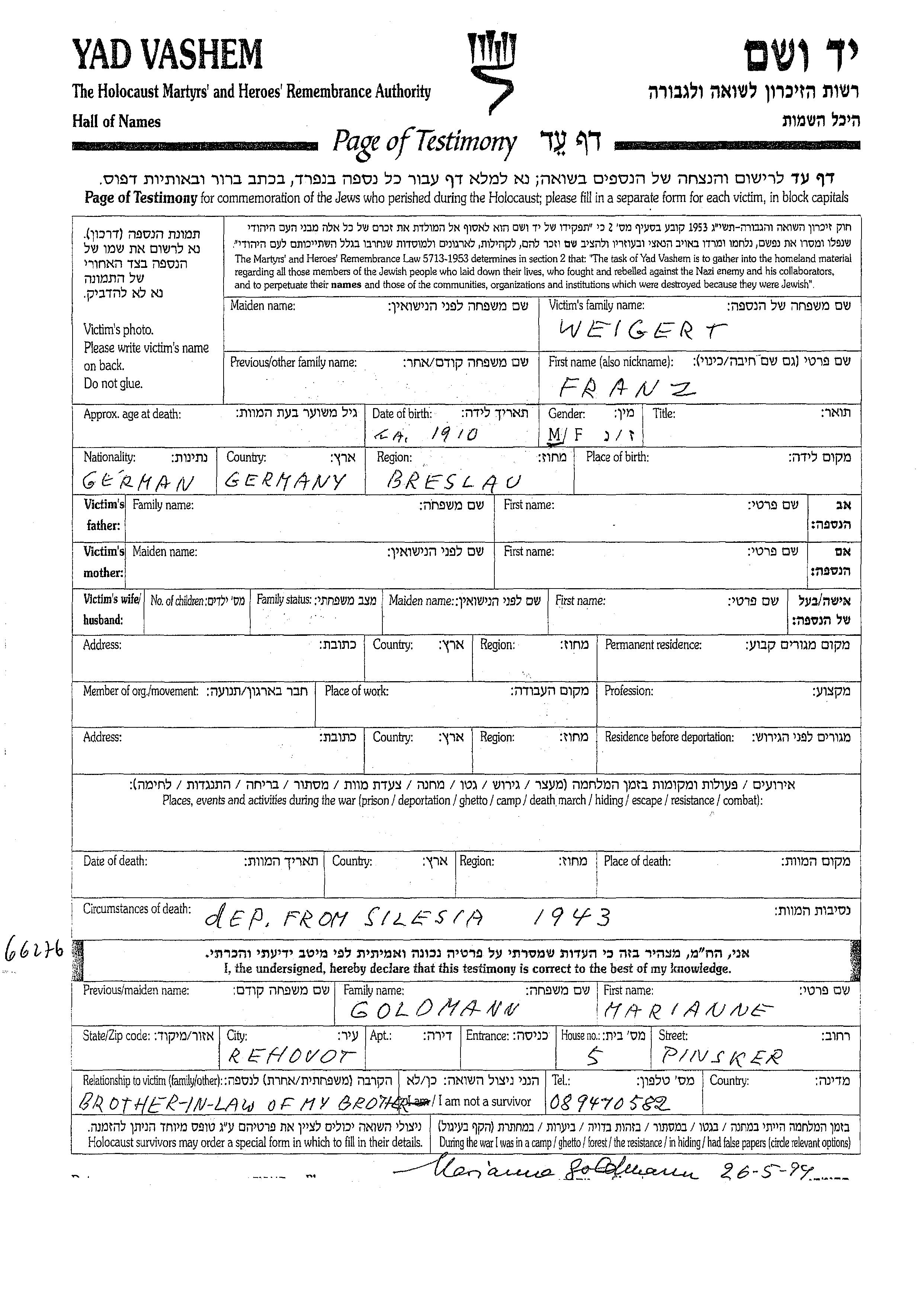 חיפוש שם מוסר דף העד. חיפוש לפי כל שם פרטי, כולל כינוי או שם חיבה