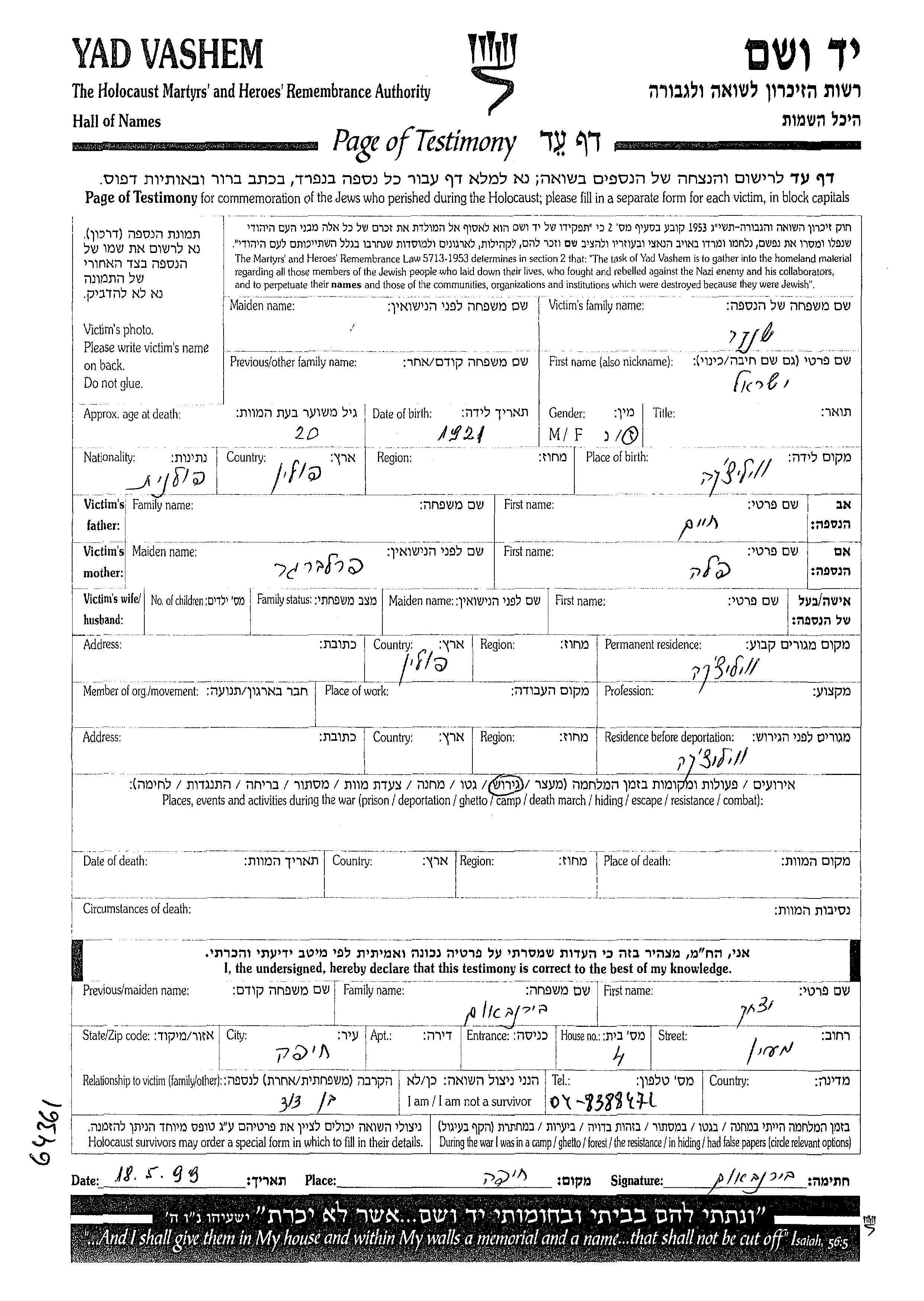 יד ושם - המפעל להנצחת השמות בדפי עד