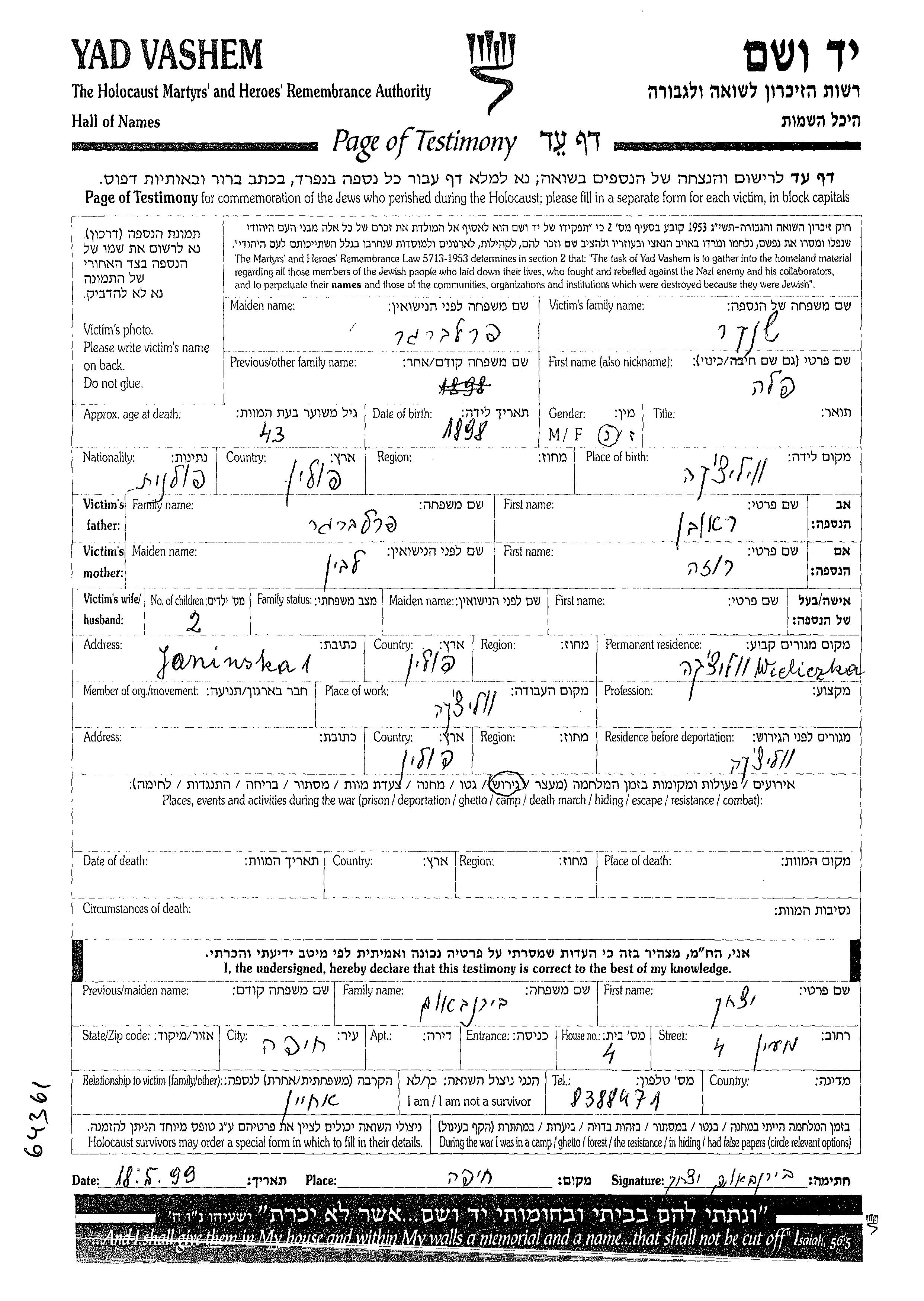 חיפוש שם מוסר דף העד. חיפוש לפי כל שם פרטי, כולל כינוי או שם חיבה
