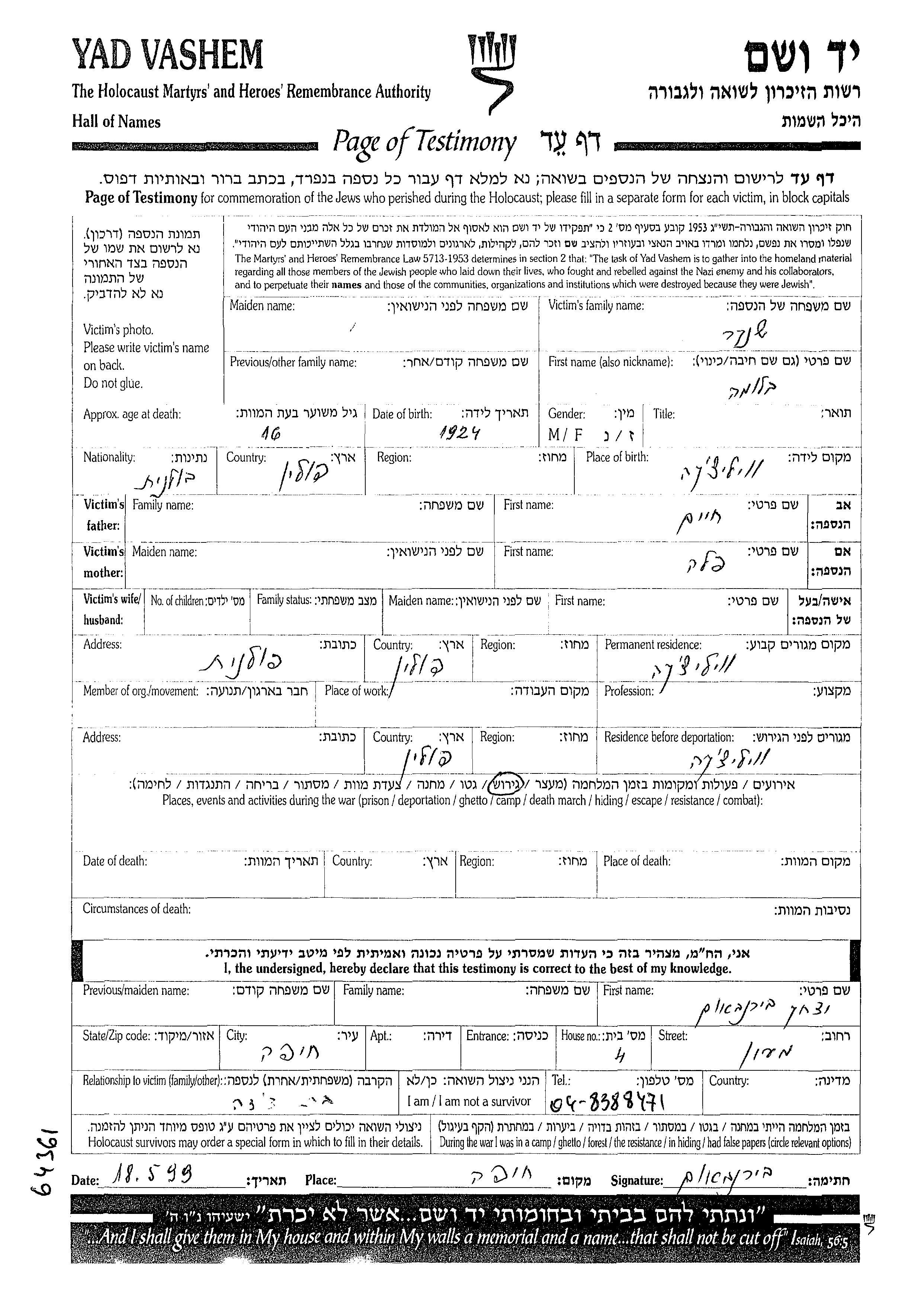 יד ושם - המפעל להנצחת השמות בדפי עד