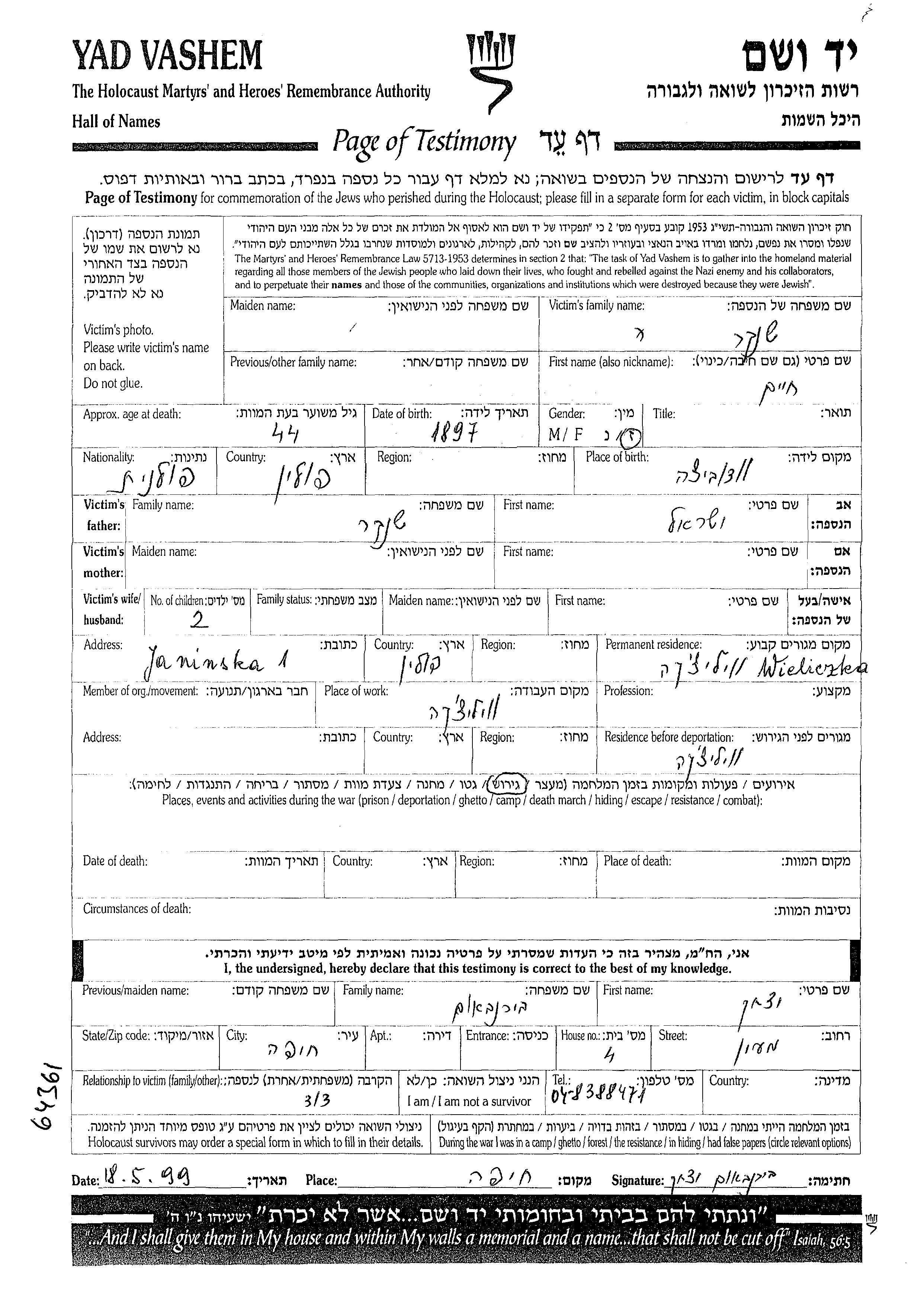 יד ושם - המפעל להנצחת השמות בדפי עד