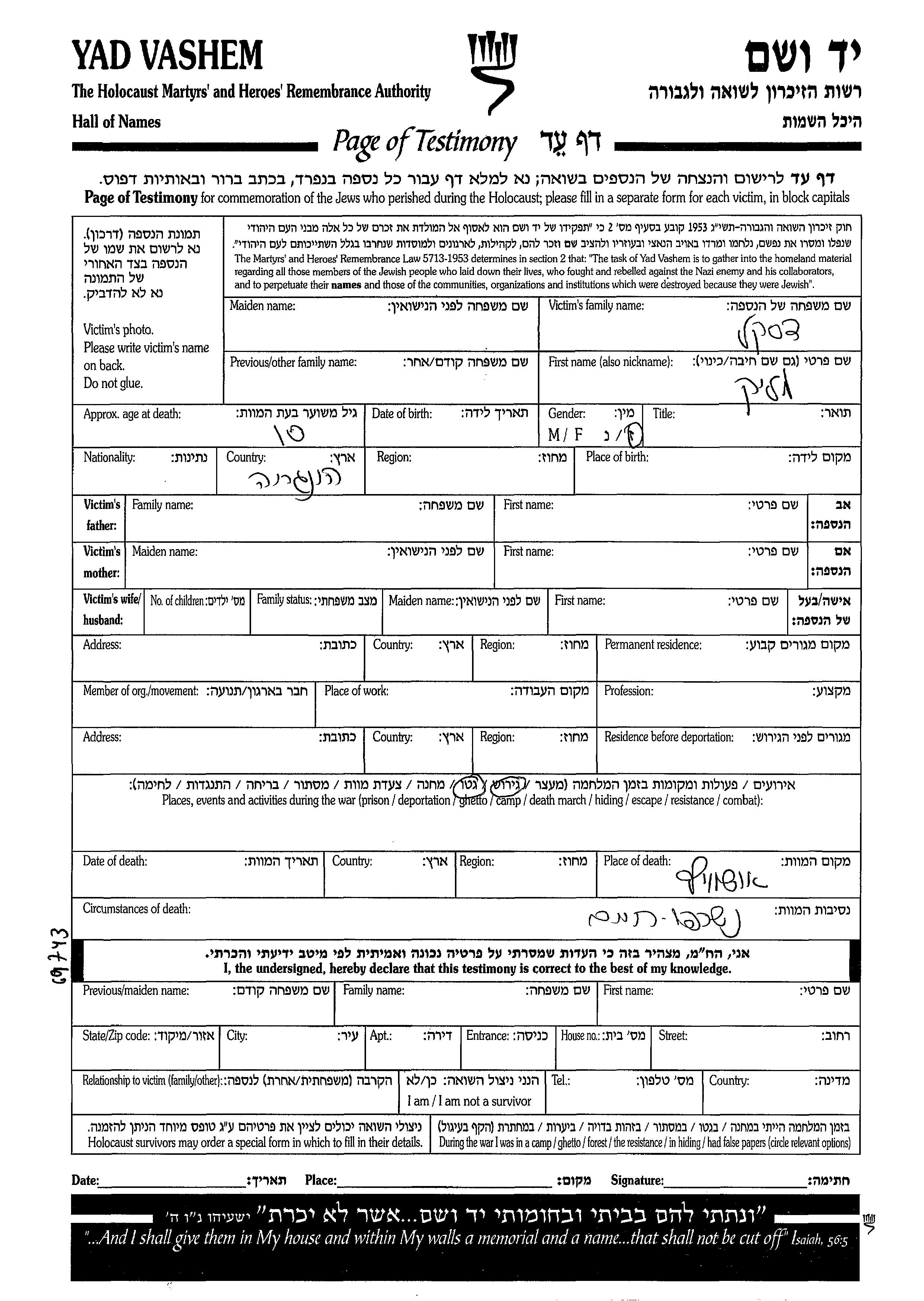 יד ושם - המפעל להנצחת השמות בדפי עד