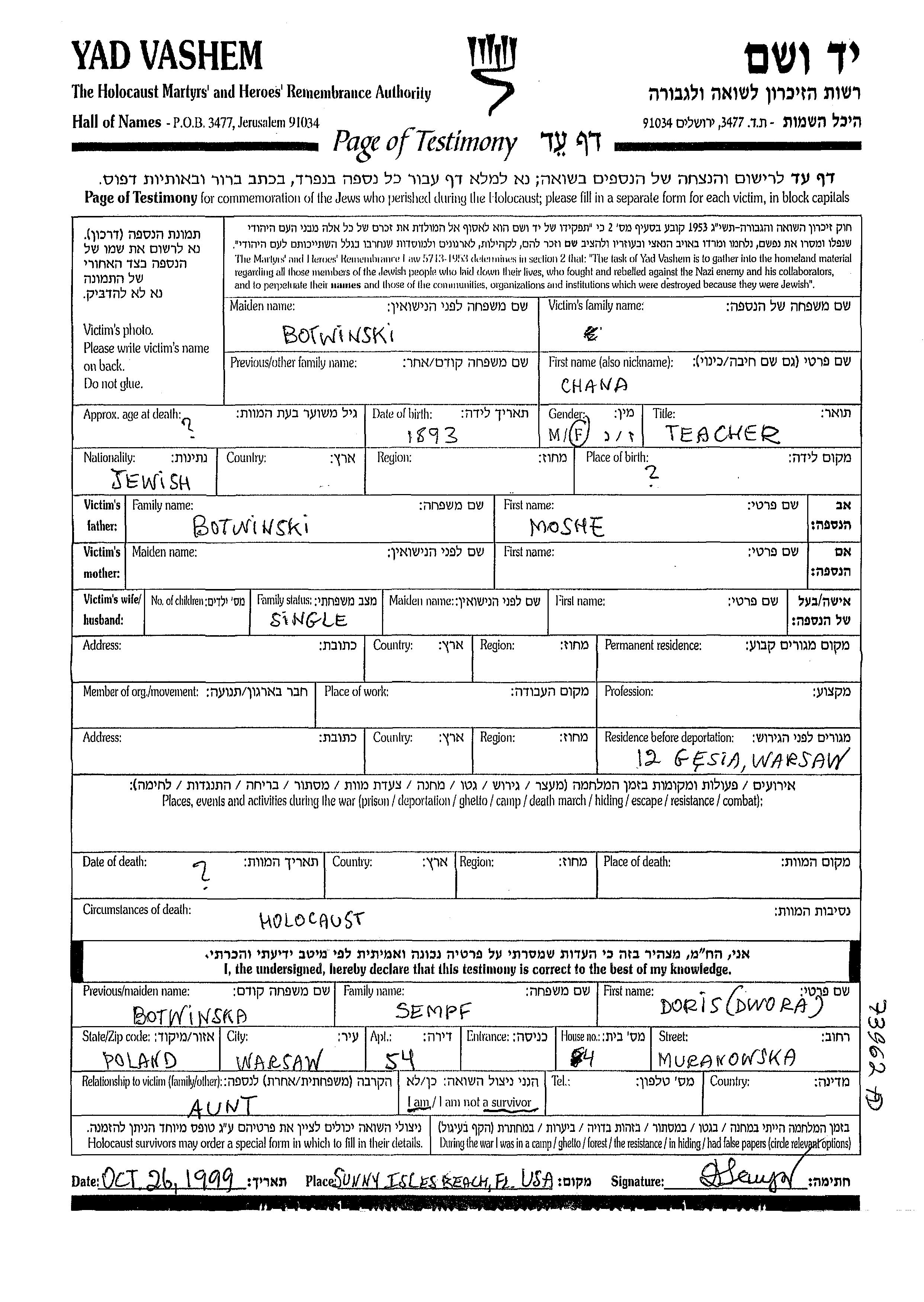 חיפוש שם מוסר דף העד. חיפוש לפי כל שם פרטי, כולל כינוי או שם חיבה