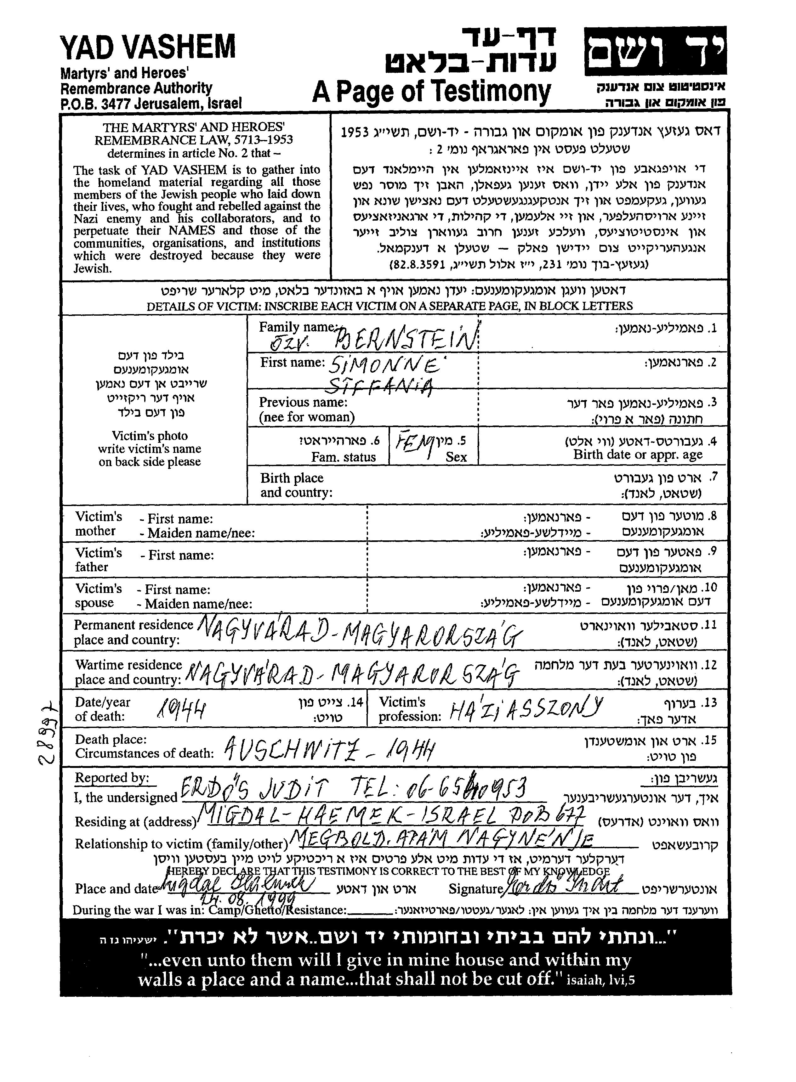חיפוש שם מוסר דף העד. חיפוש לפי כל שם פרטי, כולל כינוי או שם חיבה