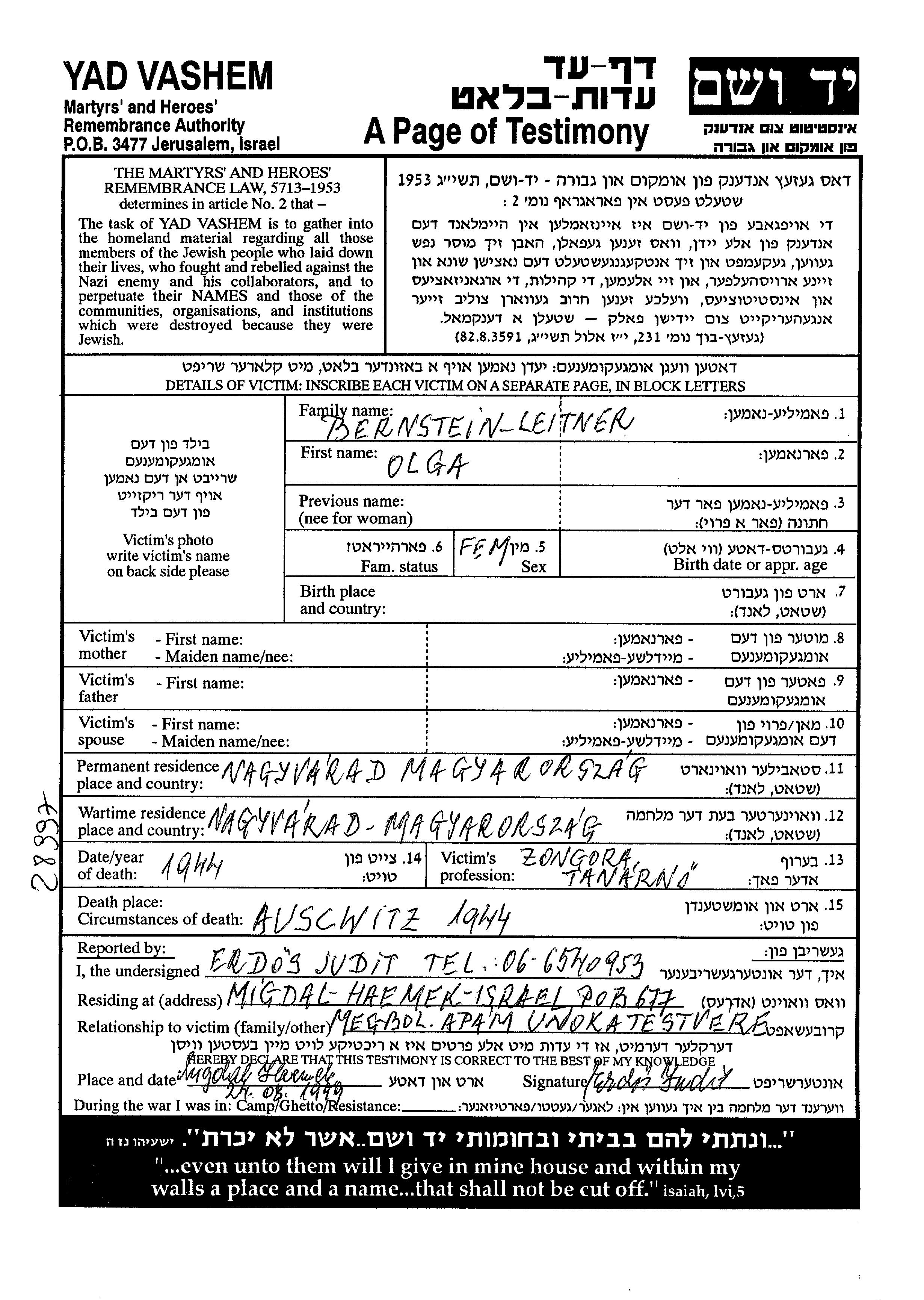 חיפוש שם מוסר דף העד. חיפוש לפי כל שם פרטי, כולל כינוי או שם חיבה