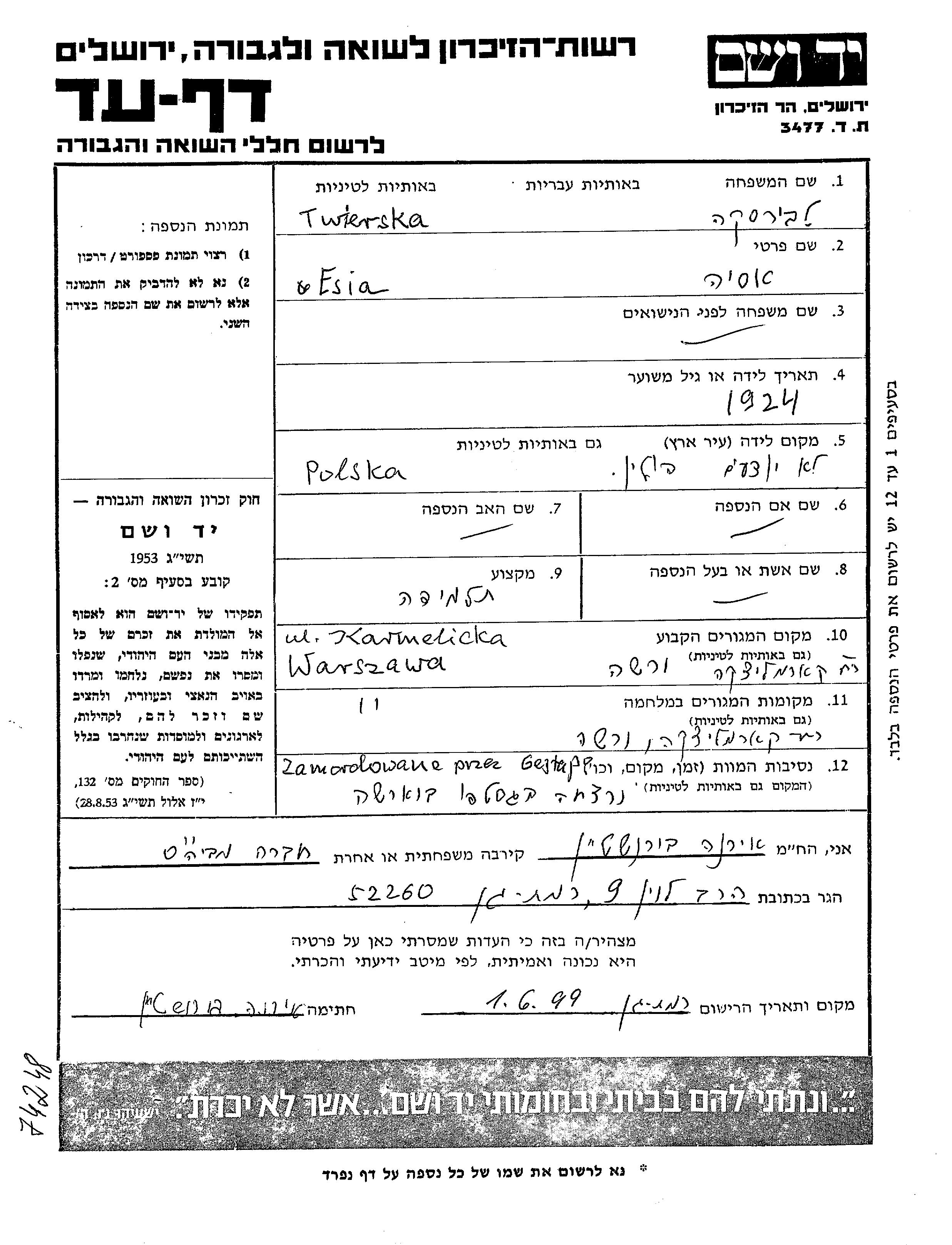 חיפוש שם מוסר דף העד. חיפוש לפי כל שם פרטי, כולל כינוי או שם חיבה