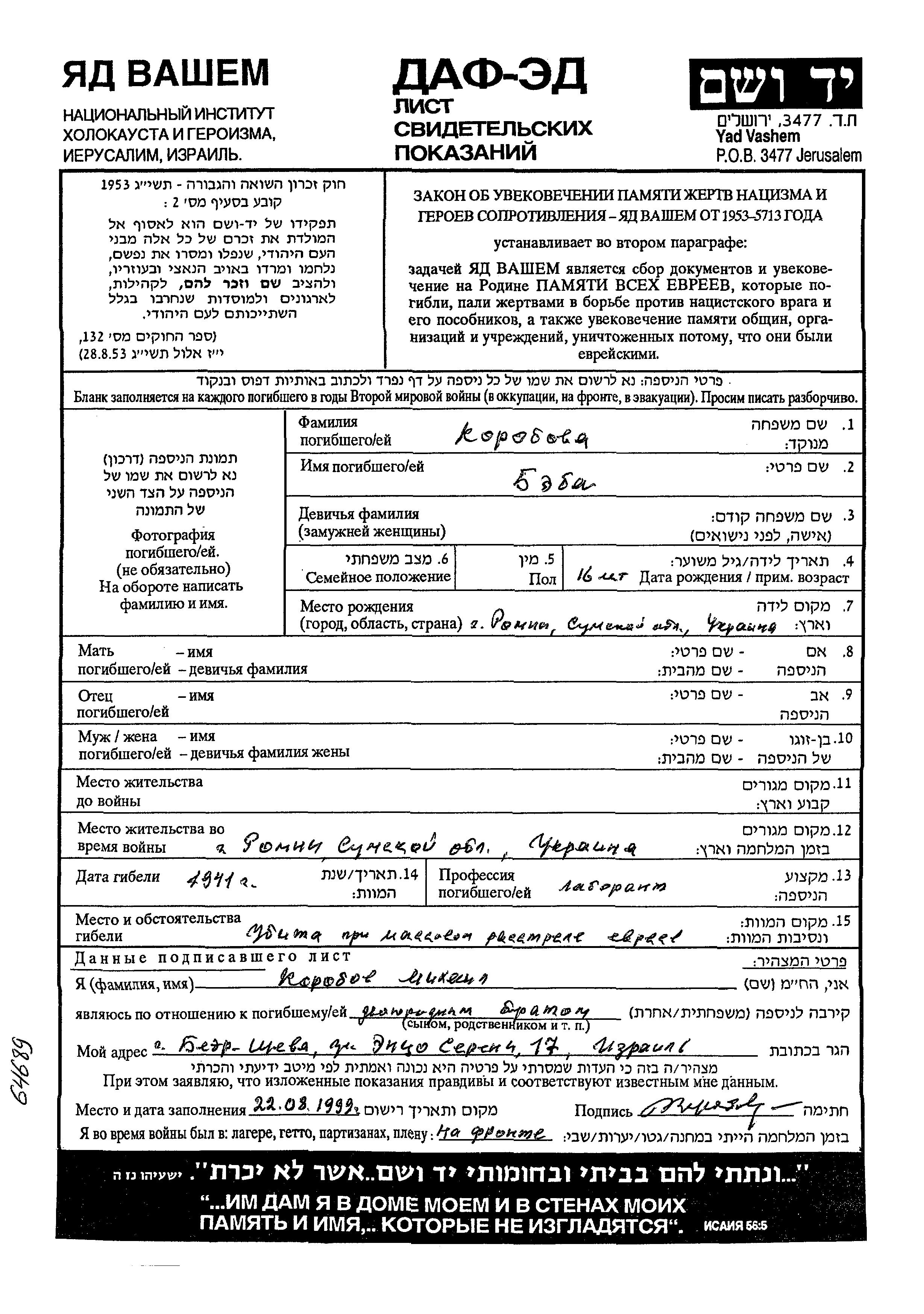 יד ושם - המפעל להנצחת השמות בדפי עד