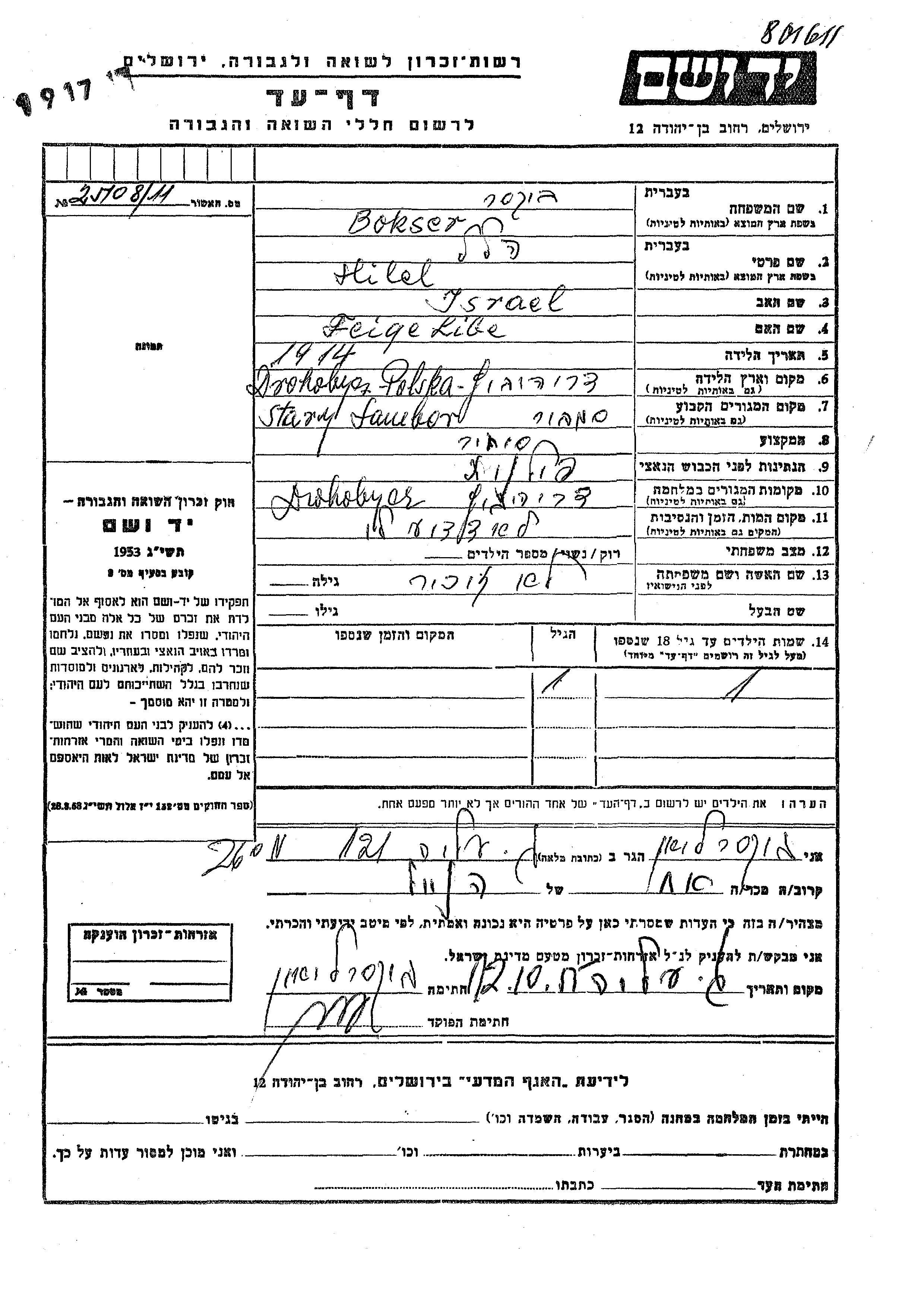 בוקסר הלל 1914 Sambor, פולין דף-עד