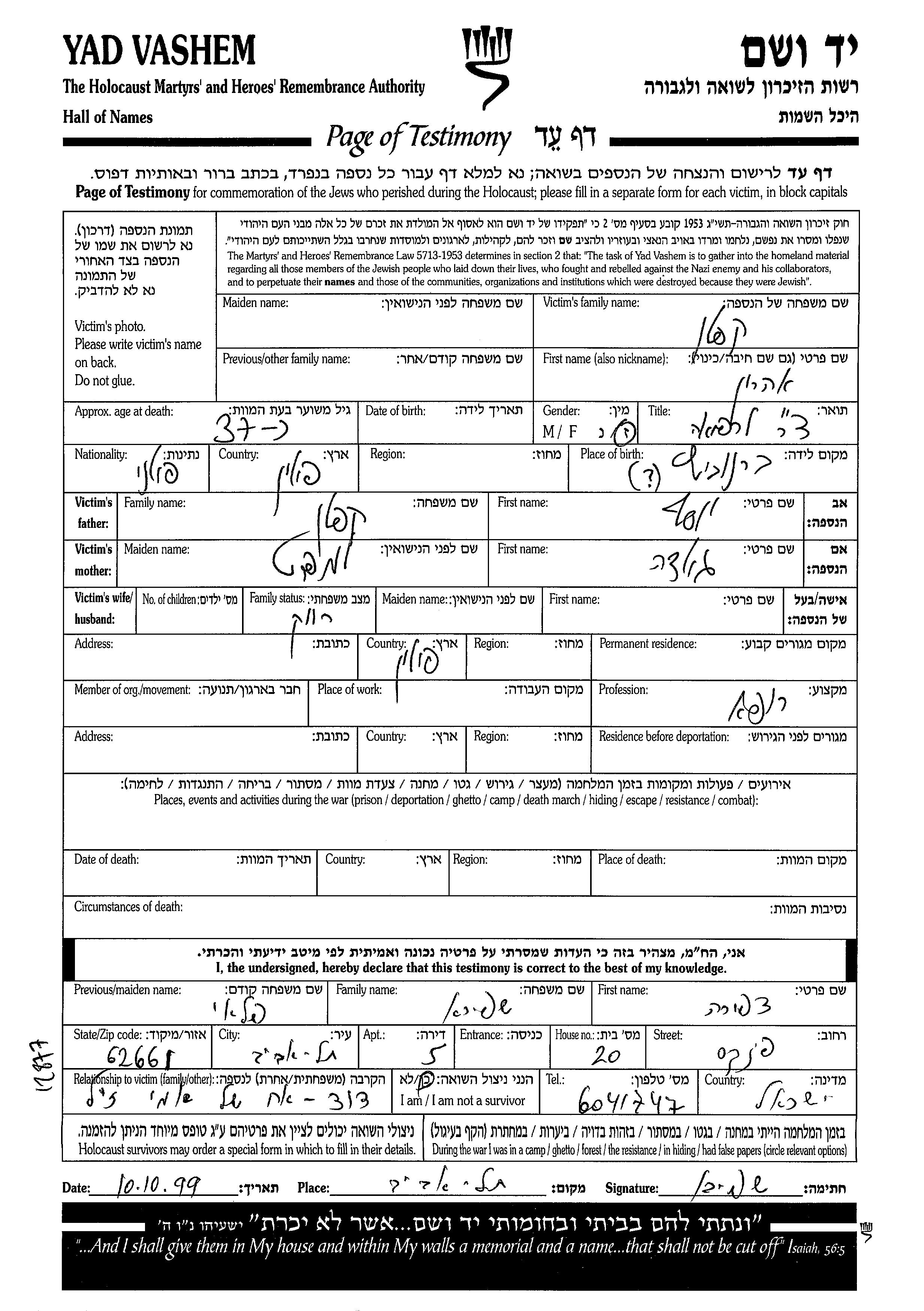 יד ושם - המפעל להנצחת השמות בדפי עד