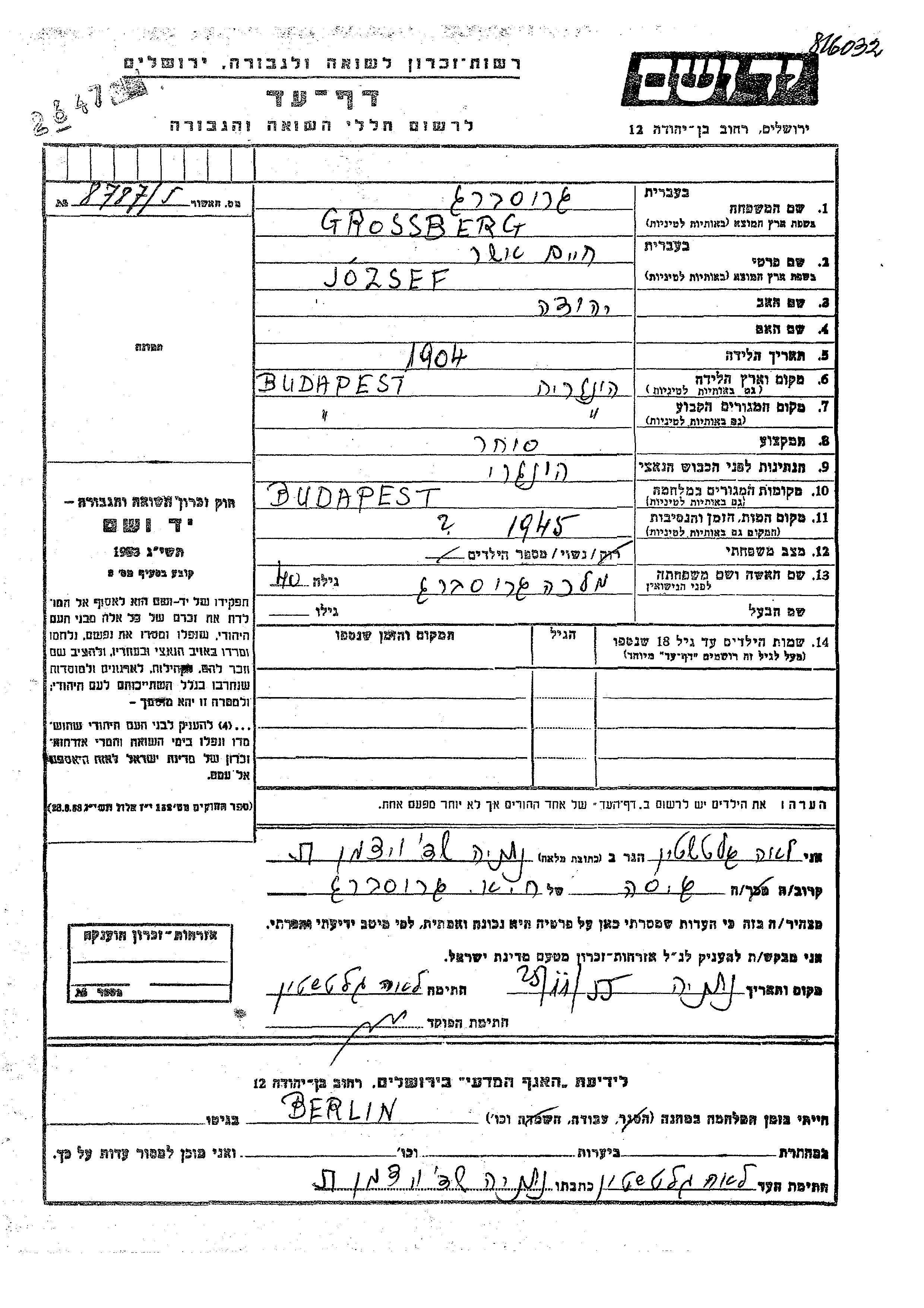 Grossberg Jozsef חיים אשר 1904 Budapest, הונגריה דף-עד