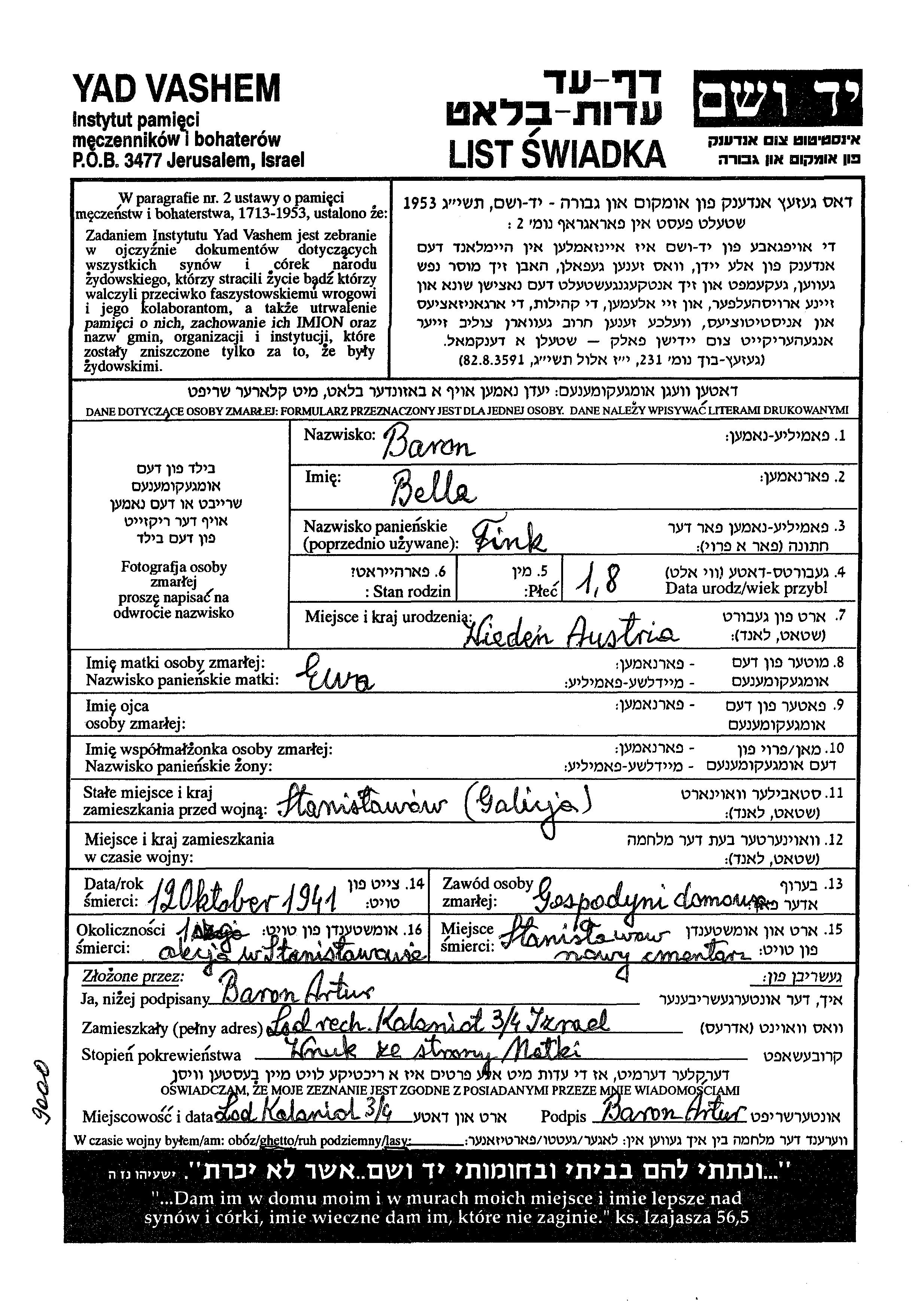 חיפוש שם מוסר דף העד. חיפוש לפי כל שם פרטי, כולל כינוי או שם חיבה