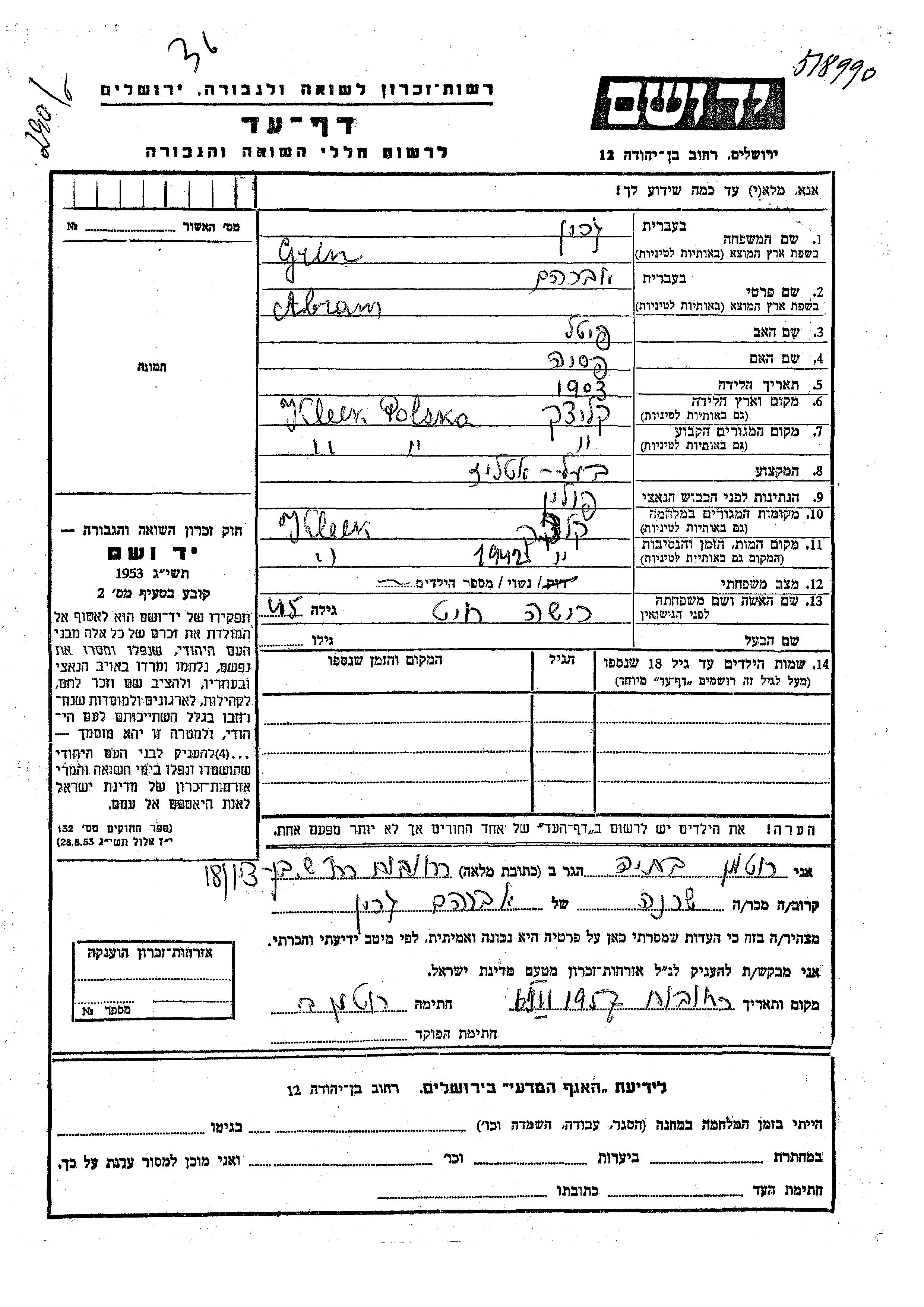 יד ושם - המפעל להנצחת השמות בדפי עד