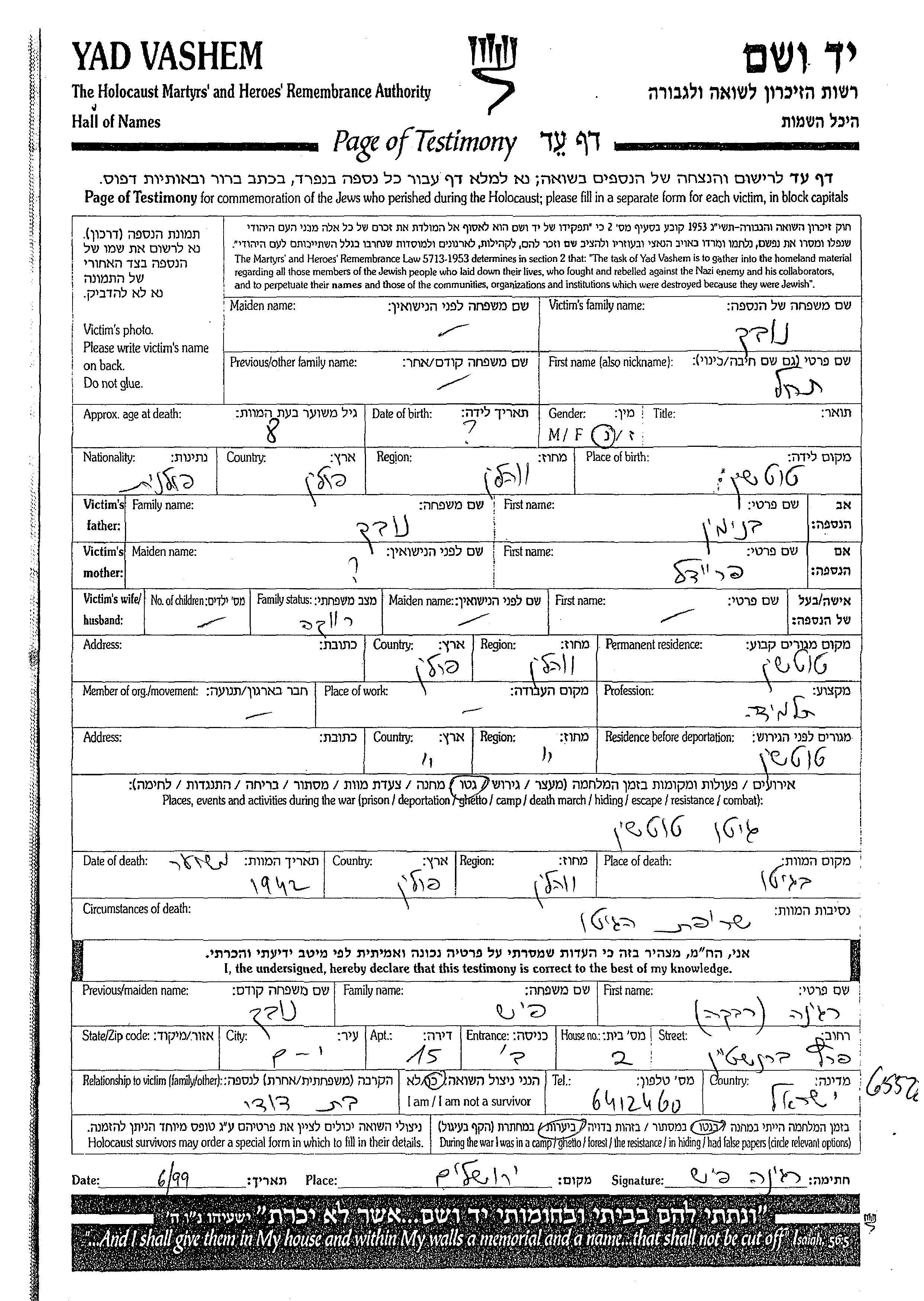 יד ושם - המפעל להנצחת השמות בדפי עד