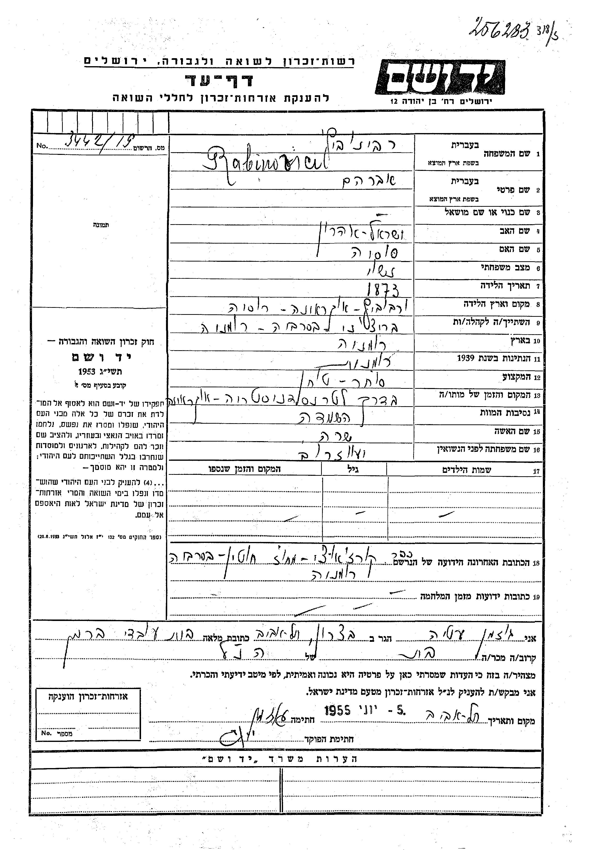 אברהם Rabinovich נולד בVerbovtsy שברומניה בשנת 1873 לישראל אהרן וסוסיה. הוא היה טוחן. לפני מלחמת העולם השניה התגורר בBriceni שברומניה. בזמן המלחמה הוא היה בCorjeuti שברומניה. אברהם נרצח בשואה. מקום המוות: Transnistria שבאוקראינה (ברה"מ).