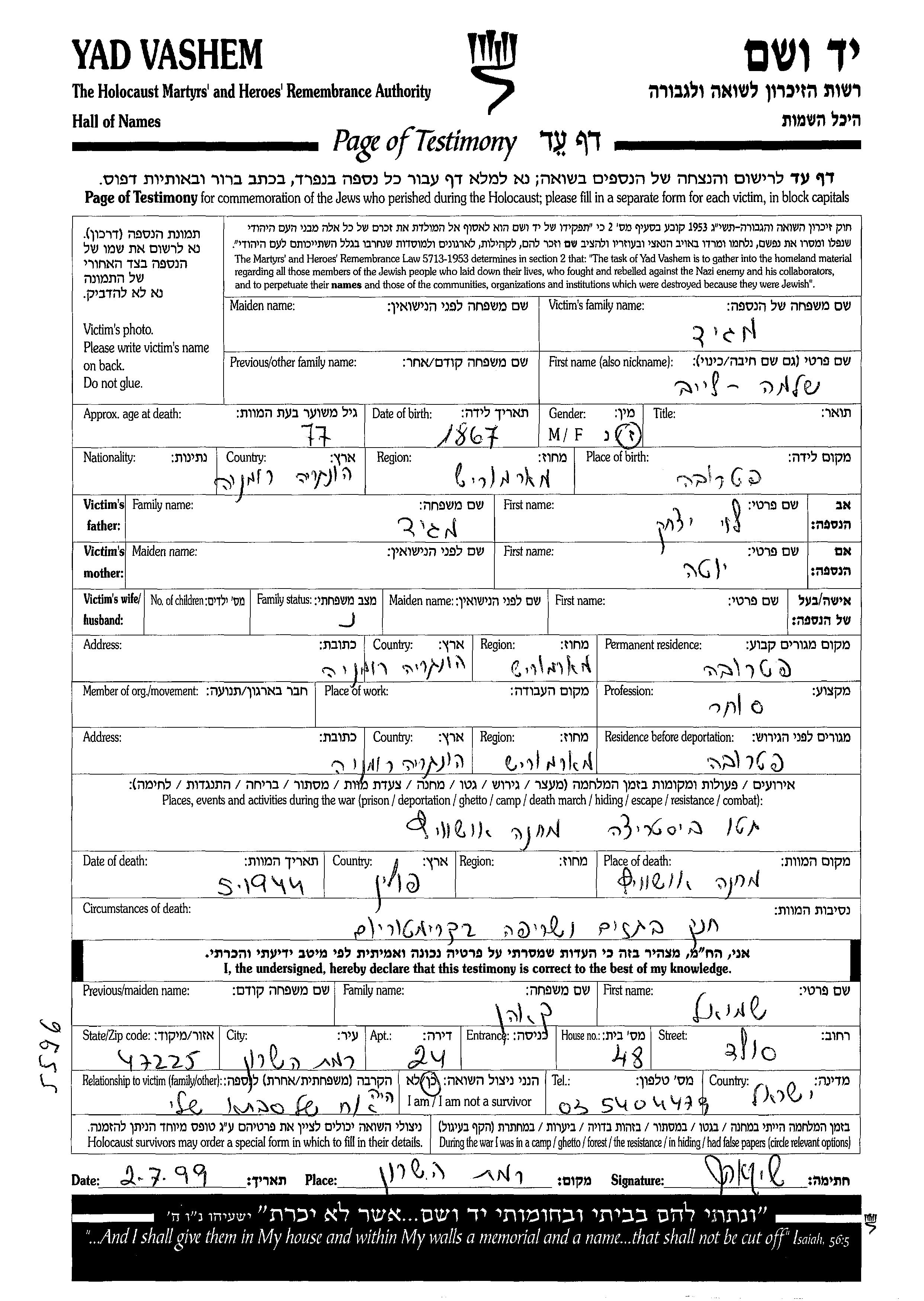 יד ושם - המפעל להנצחת השמות בדפי עד