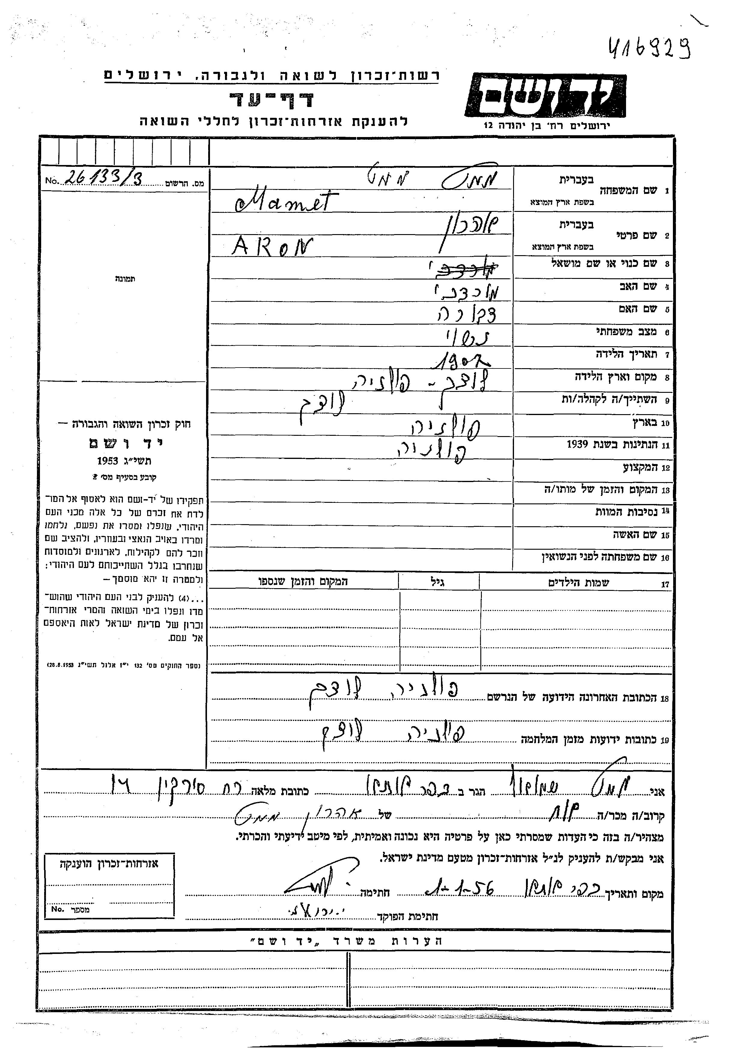 יד ושם - המפעל להנצחת השמות בדפי עד