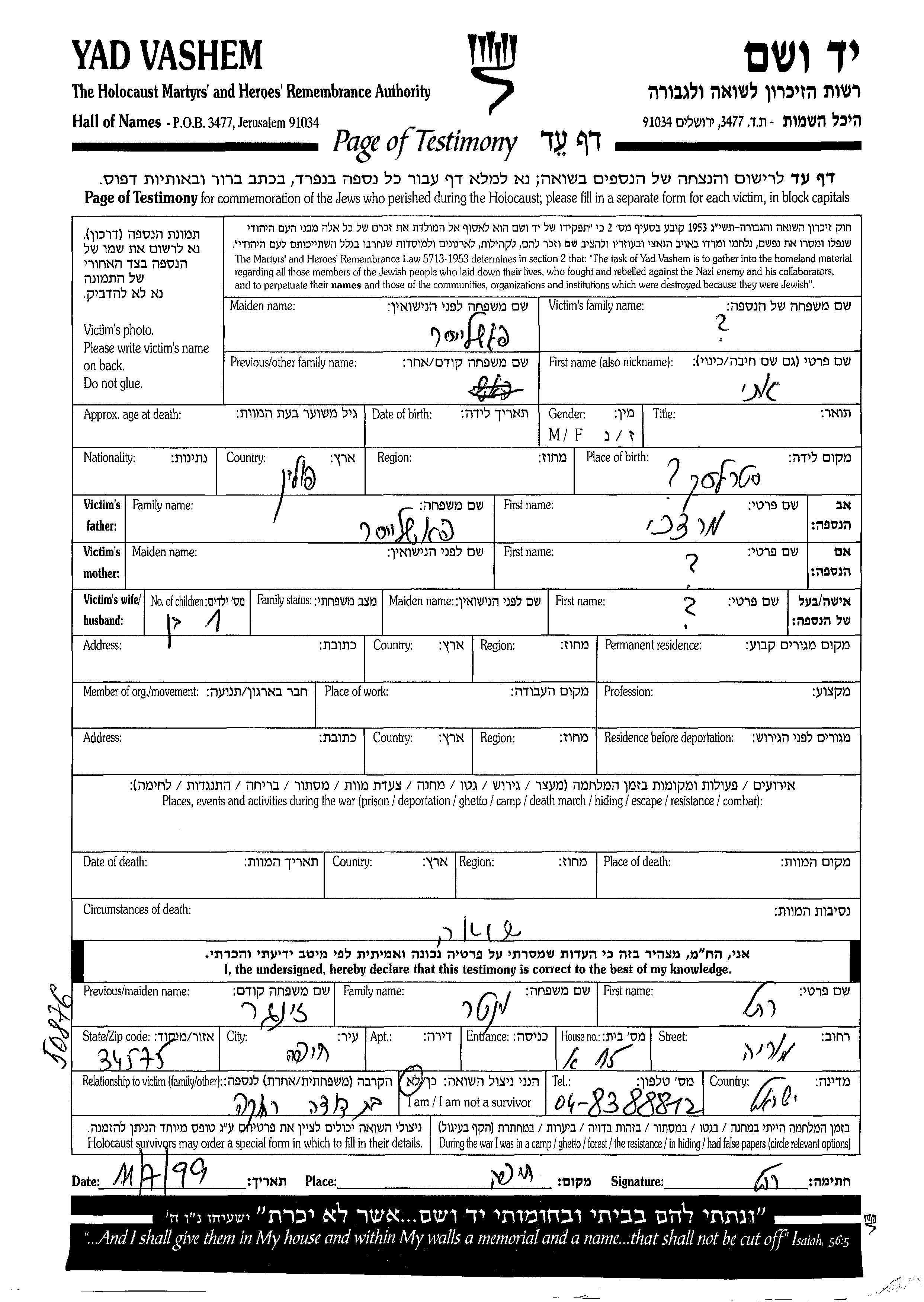 יד ושם - המפעל להנצחת השמות בדפי עד