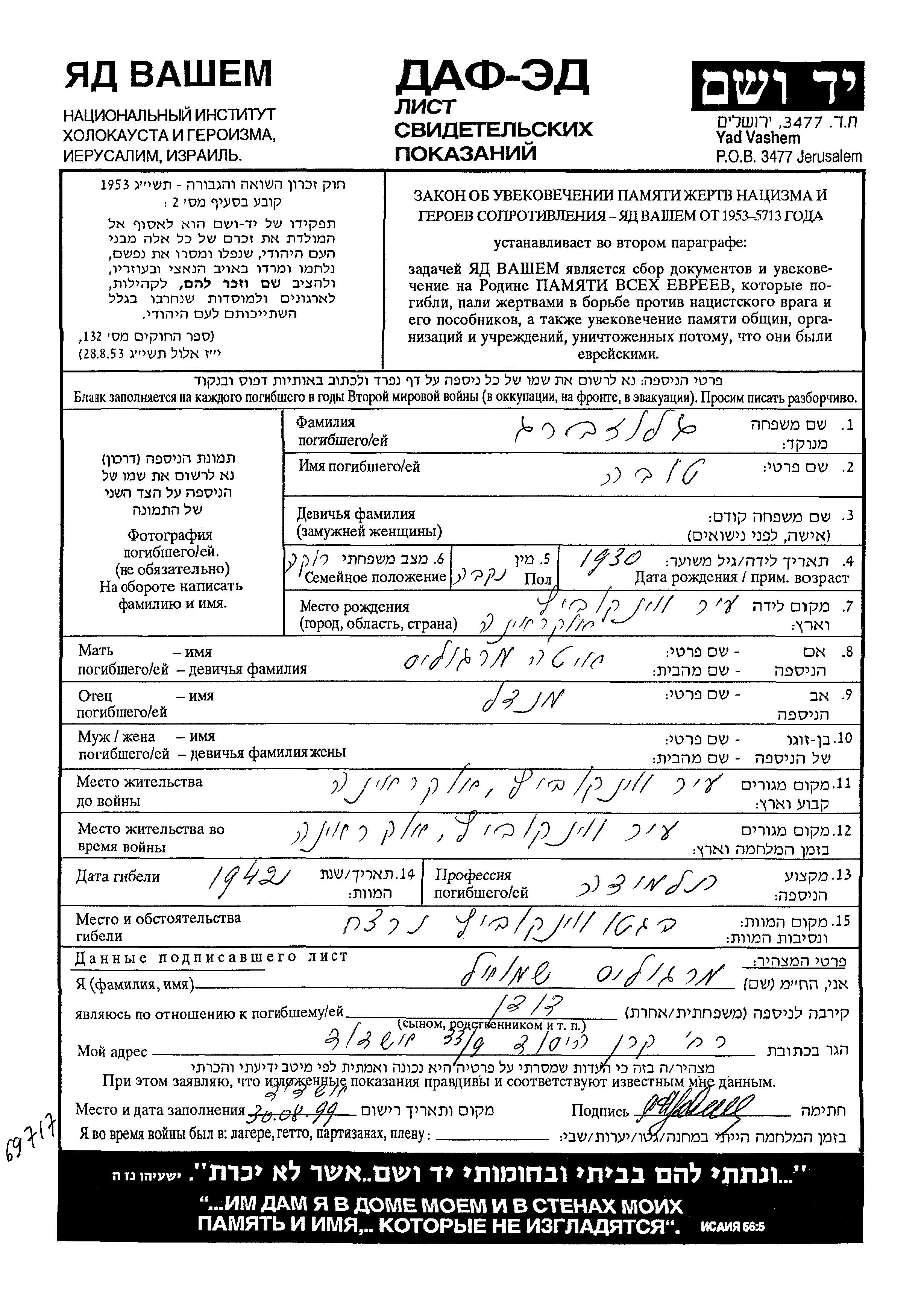 יד ושם - המפעל להנצחת השמות בדפי עד