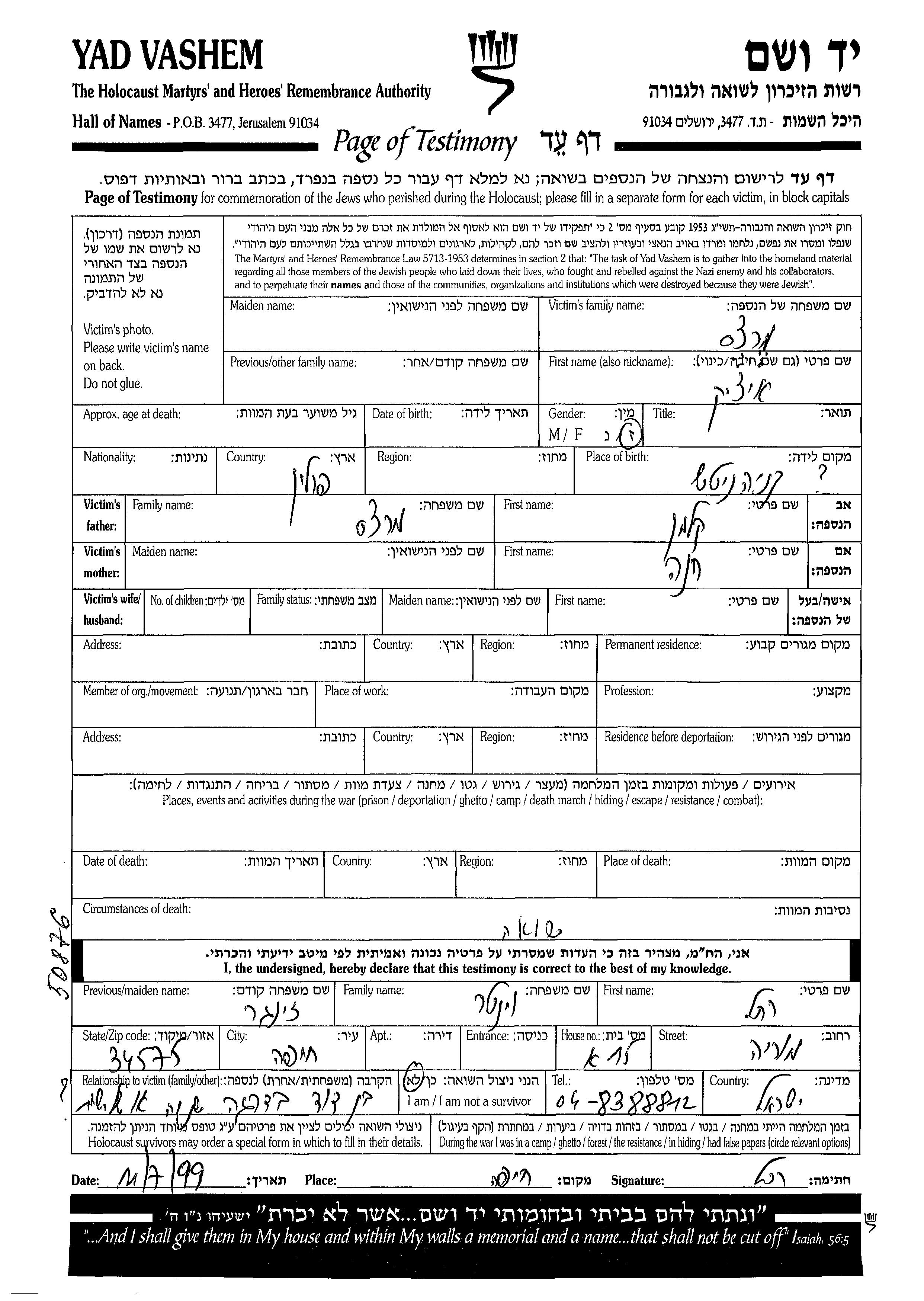 יד ושם - המפעל להנצחת השמות בדפי עד
