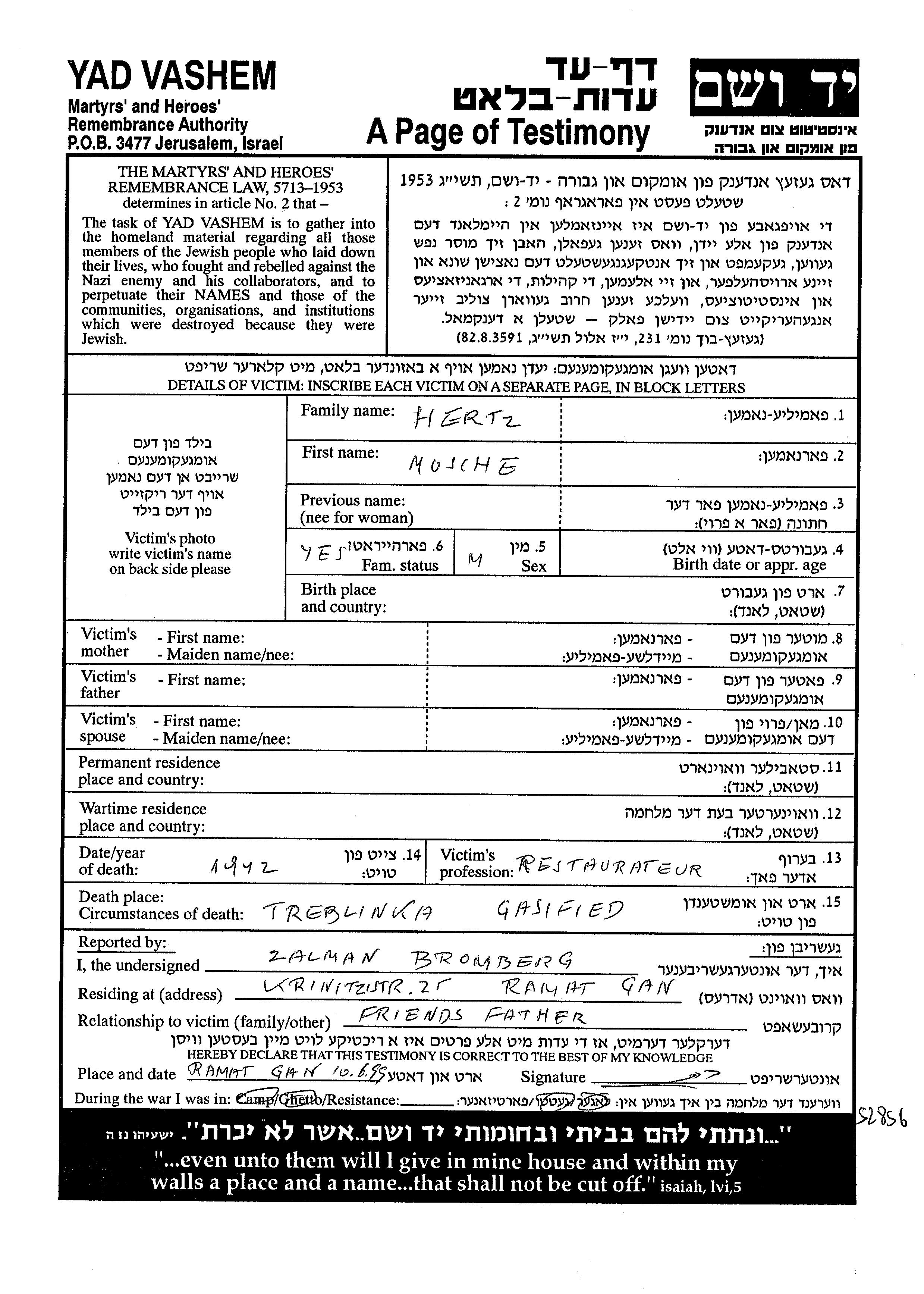חיפוש שם מוסר דף העד. חיפוש לפי כל שם פרטי, כולל כינוי או שם חיבה