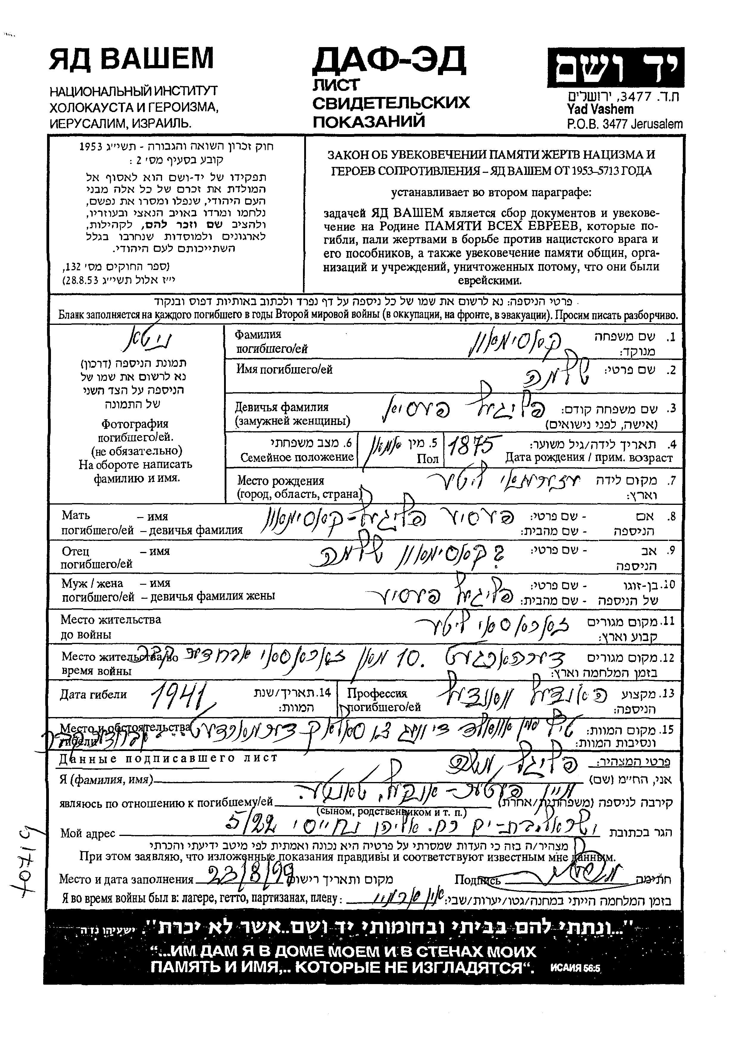 חיפוש שם מוסר דף העד. חיפוש לפי כל שם פרטי, כולל כינוי או שם חיבה