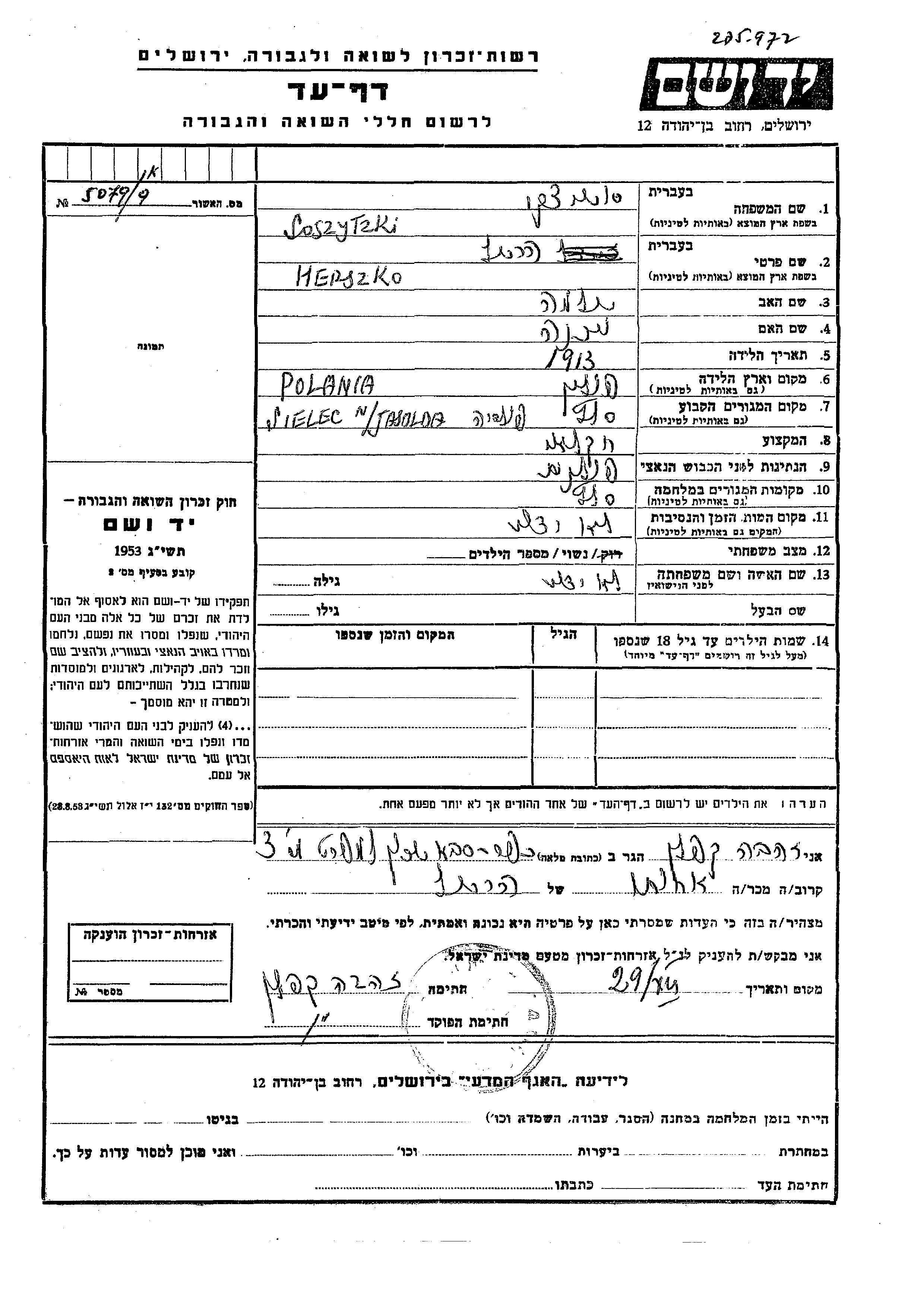 Herszko Soszytzki סושיצקי נולד בפולין בשנת 1913 לשלמה וויכנה. הוא היה חקלאי ונשוי. לפני מלחמת העולם השניה התגורר בSielec nad Jasiolda שבפולין. בזמן המלחמה הוא היה בSielec nad Jasiolda שבפולין. הוא נרצח בשואה.