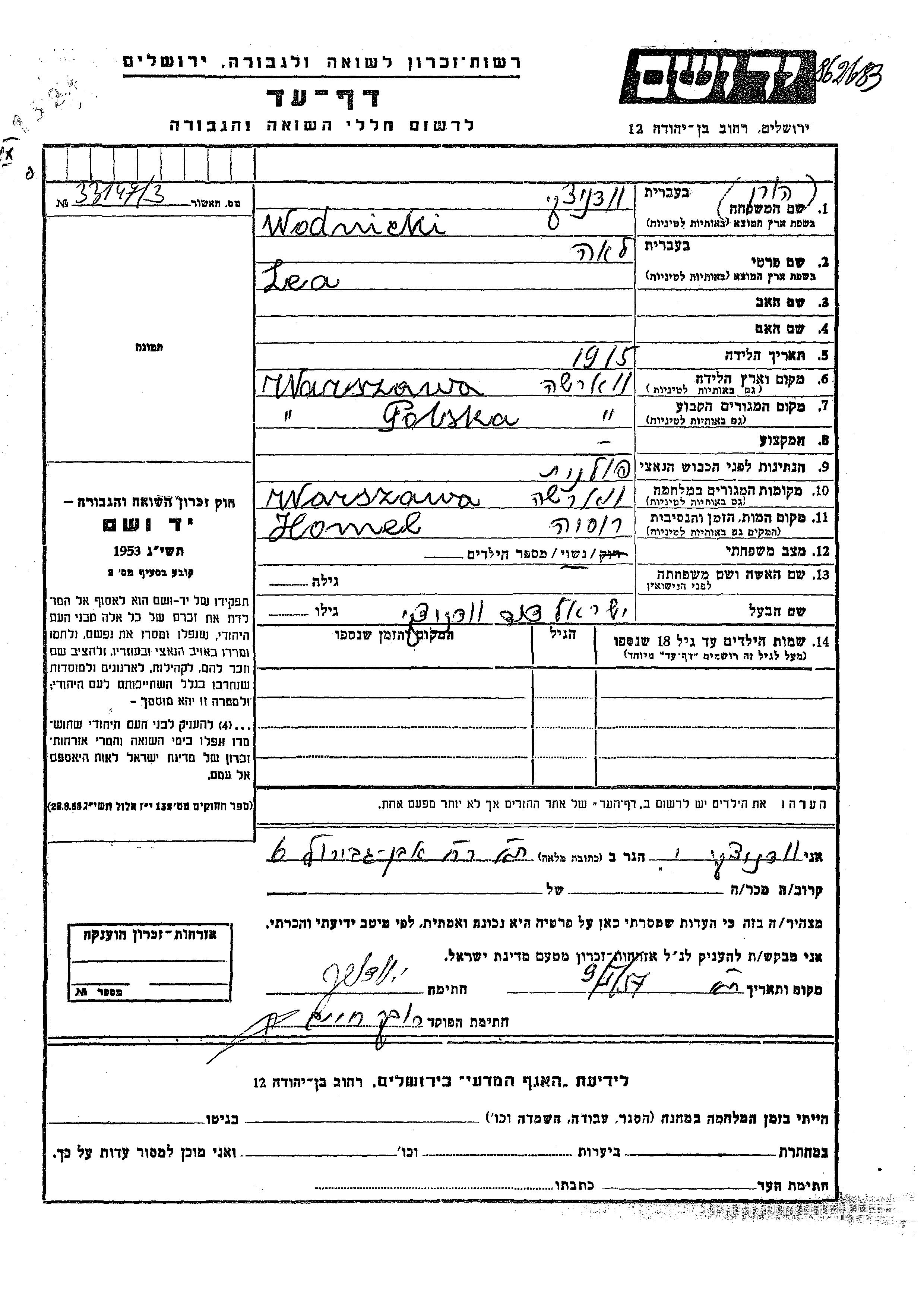יד ושם - המפעל להנצחת השמות בדפי עד