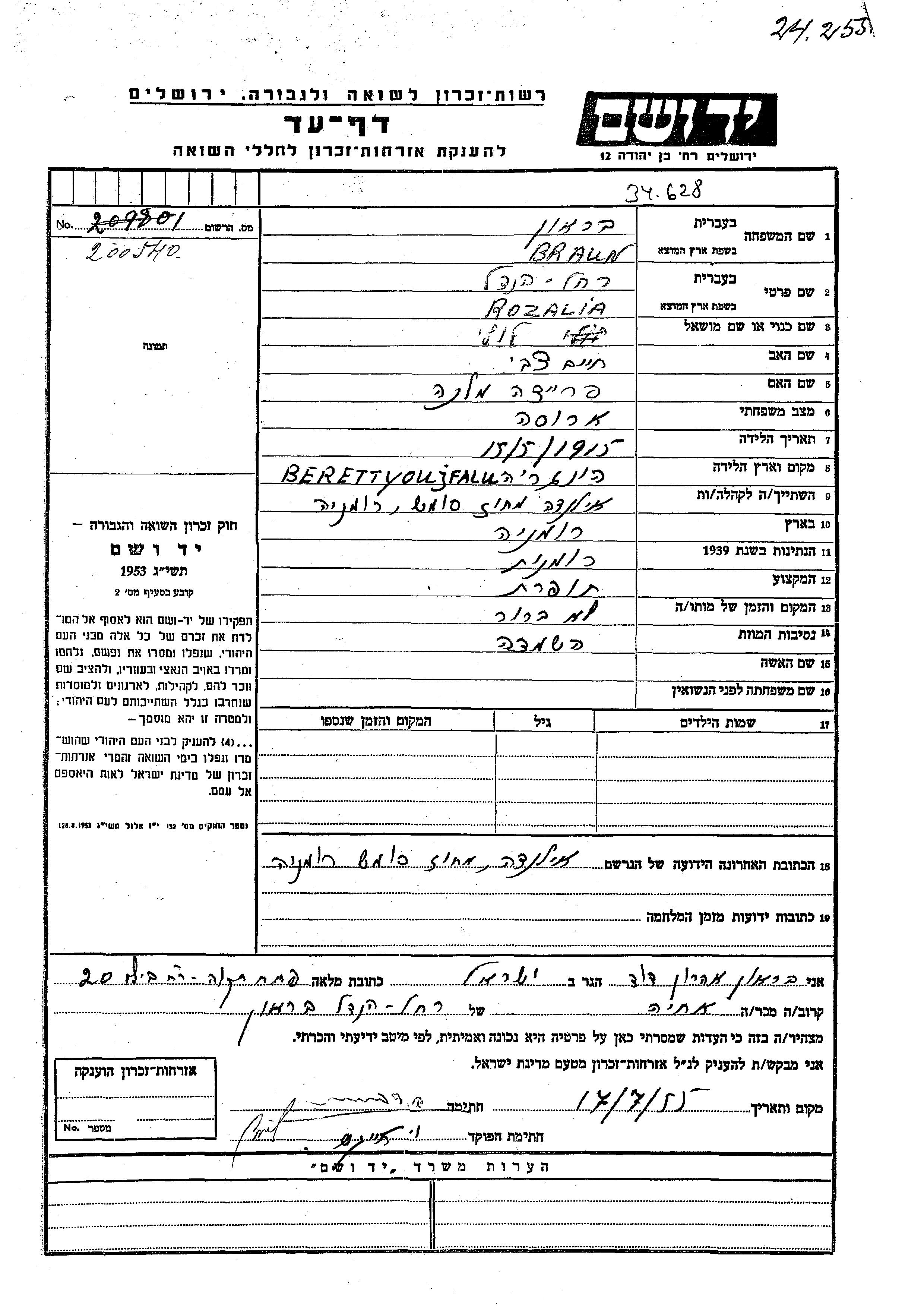 בראון רוזליה רחל הנדל לילי 1915 Ilonda, רומניה דף-עד