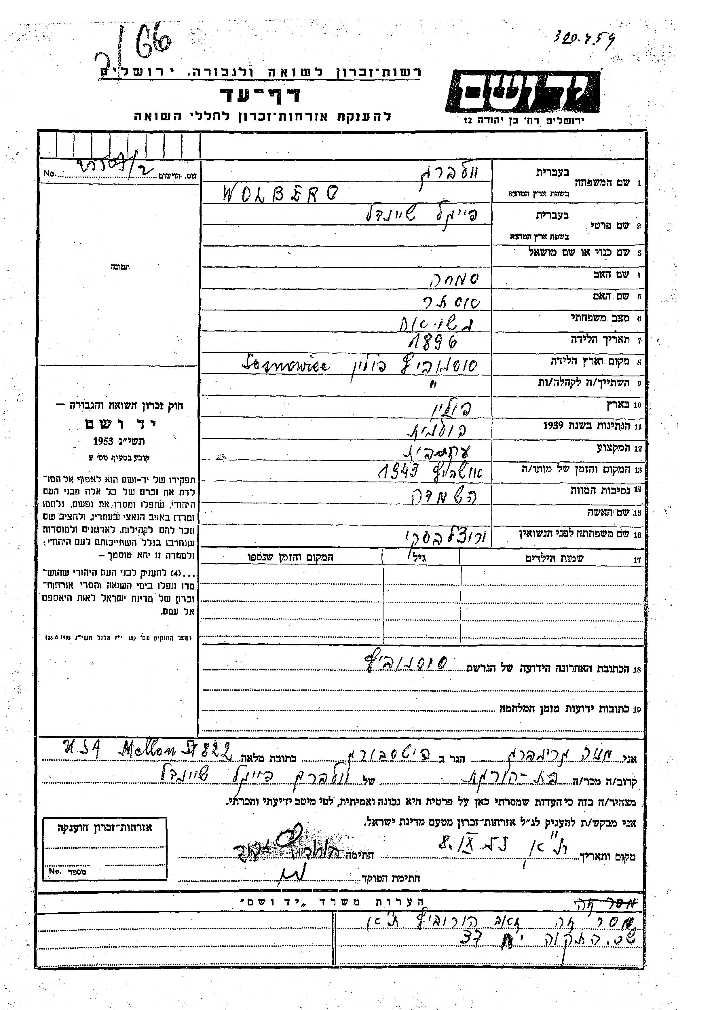פייגל שיינדל Wolberg לבית ירוצלבסקי נולדה בSosnowiec שבפולין בשנת 1896 לשמחה ואסתר. היא היתה עקרת בית. לפני מלחמת העולם השניה התגוררה בSosnowiec שבפולין. בזמן המלחמה היא היתה בSosnowiec שבפולין. פייגל שיינדל נרצחה בשואה. מקום המוות: Auschwitz שבפולין בשנת 1943.