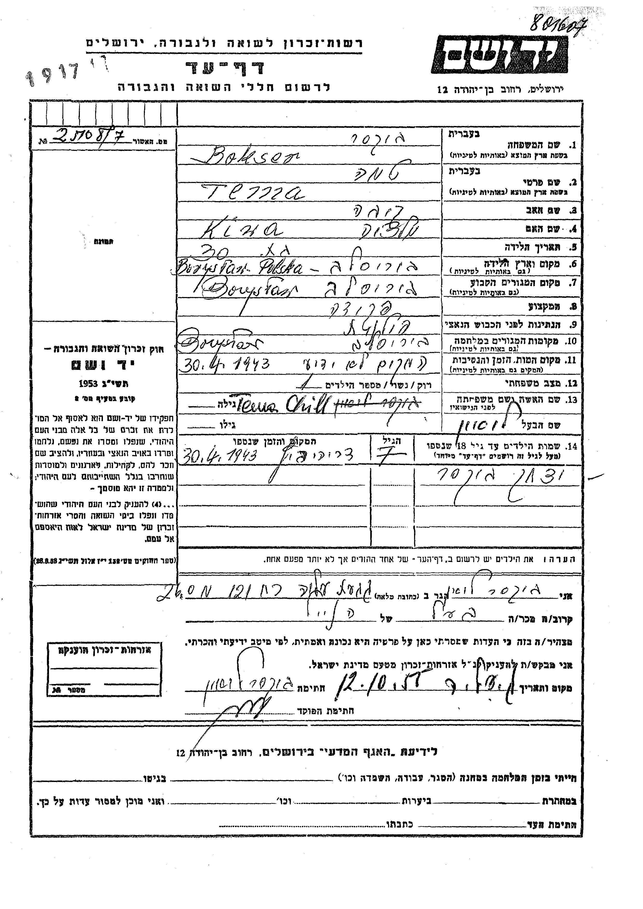 טמה בוקסר לבית Chill נולדה בBoryslaw שבפולין לKiwa ומלציה. היא היתה פקידה ונשואה לליאון. לפני מלחמת העולם השניה התגוררה בBoryslaw שבפולין. בזמן המלחמה היא היתה בBoryslaw שבפולין. טמה נרצחה בשואה. מקום המוות: לא ידוע בשנת 30/04/1943.