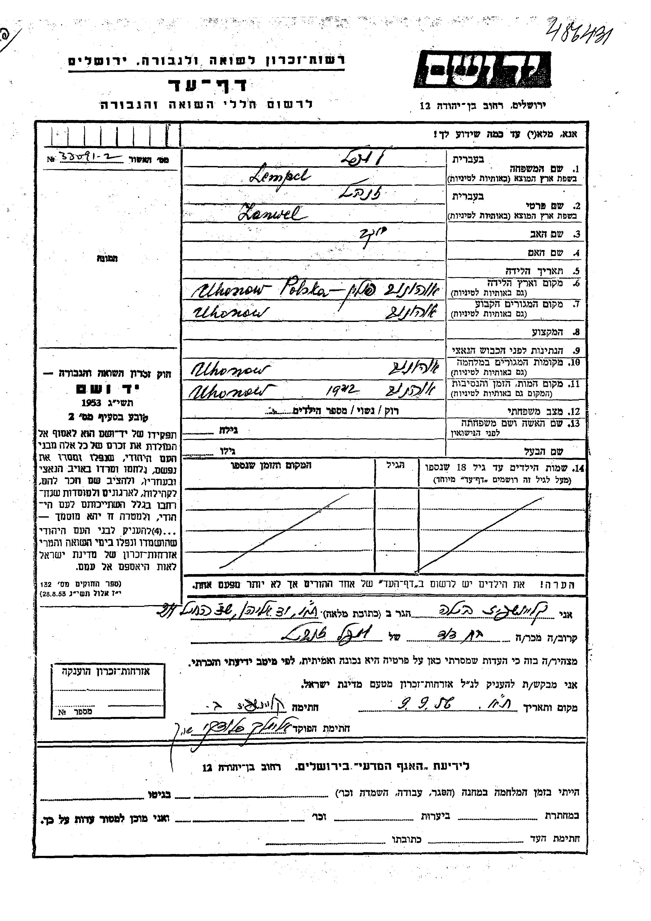 יד ושם - המפעל להנצחת השמות בדפי עד