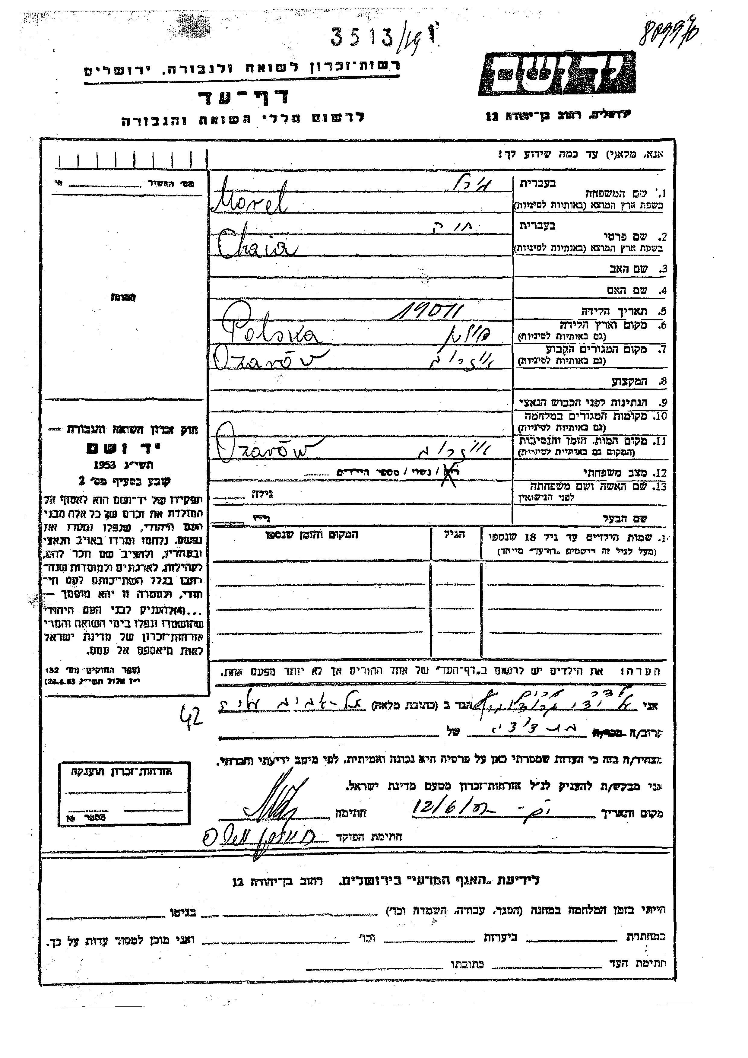 Morel חיה 1911 Ozarow, פולין דף-עד