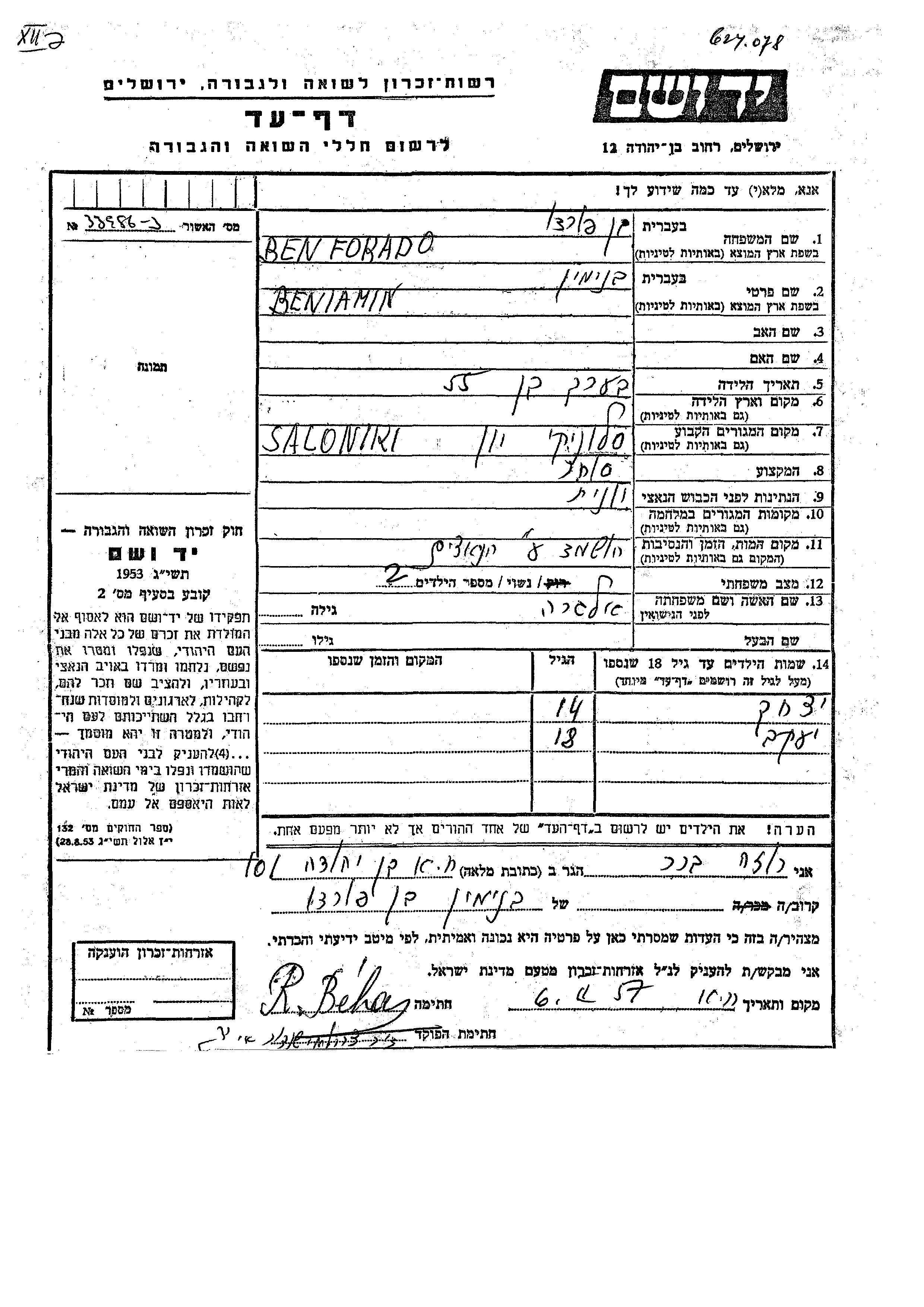 בנימין בנפורדו. הוא היה סוחר ונשוי לאלגרה. לפני מלחמת העולם השניה התגורר בSaloniki שביון.
