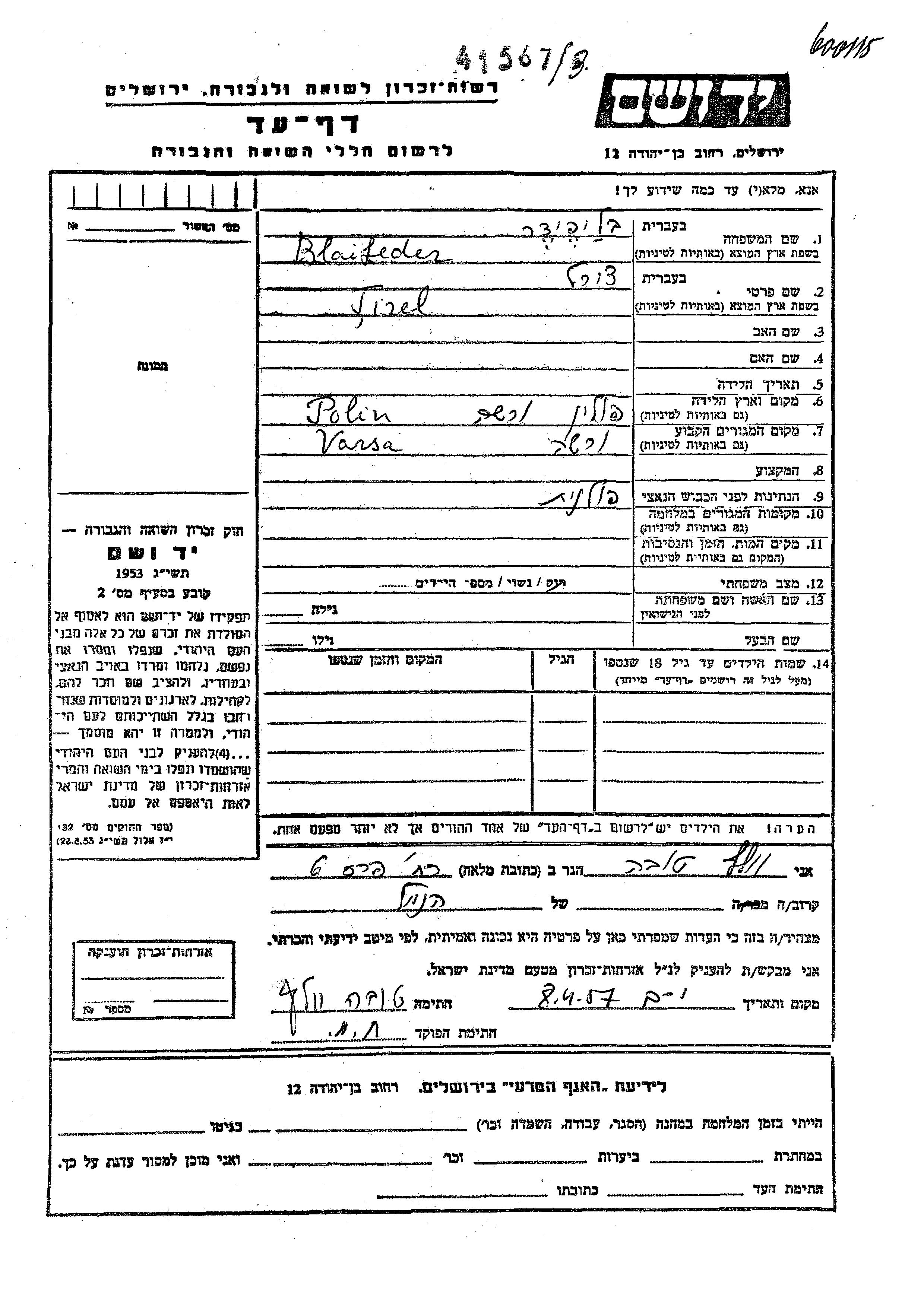 יד ושם - המפעל להנצחת השמות בדפי עד