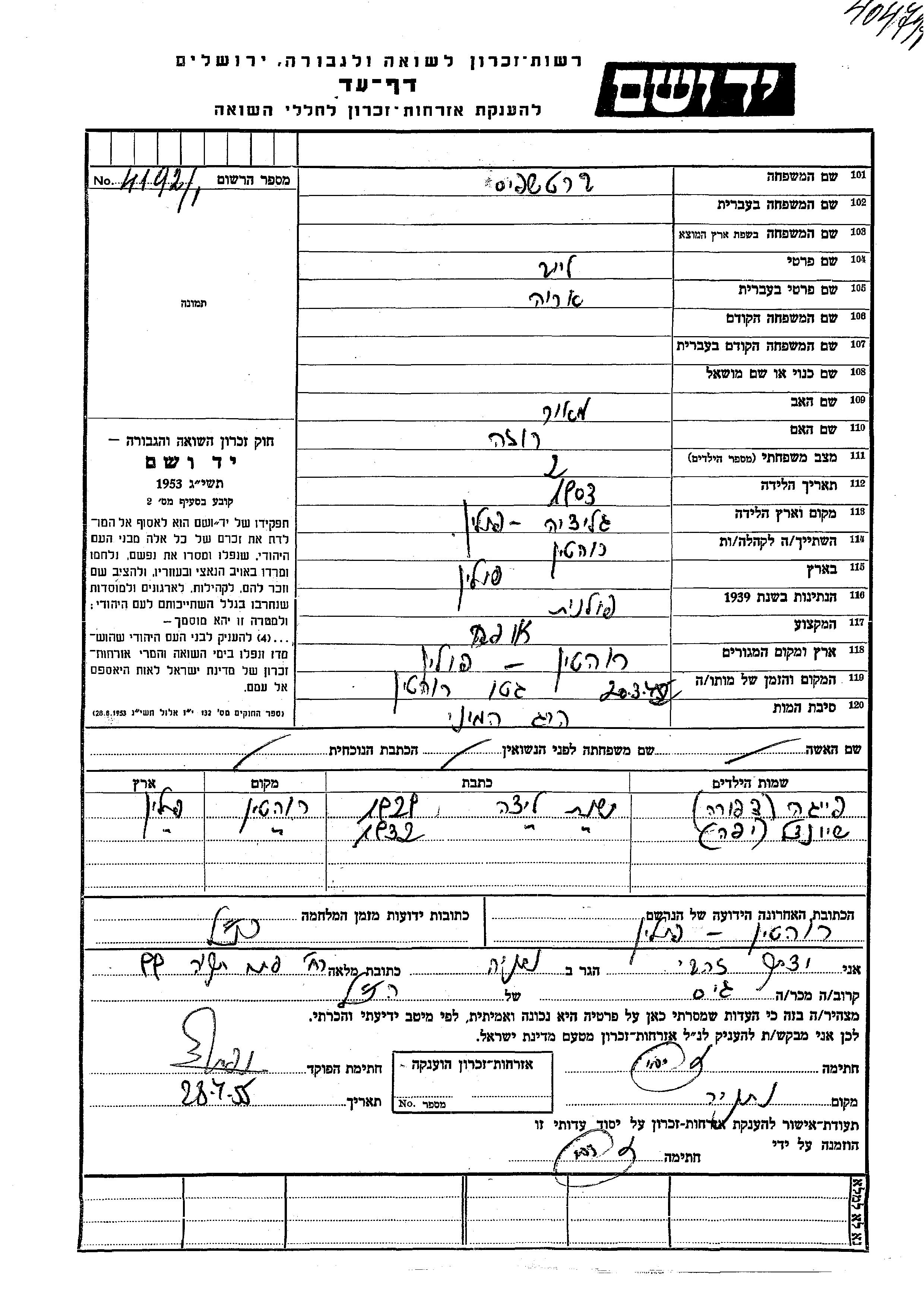 יד ושם - המפעל להנצחת השמות בדפי עד