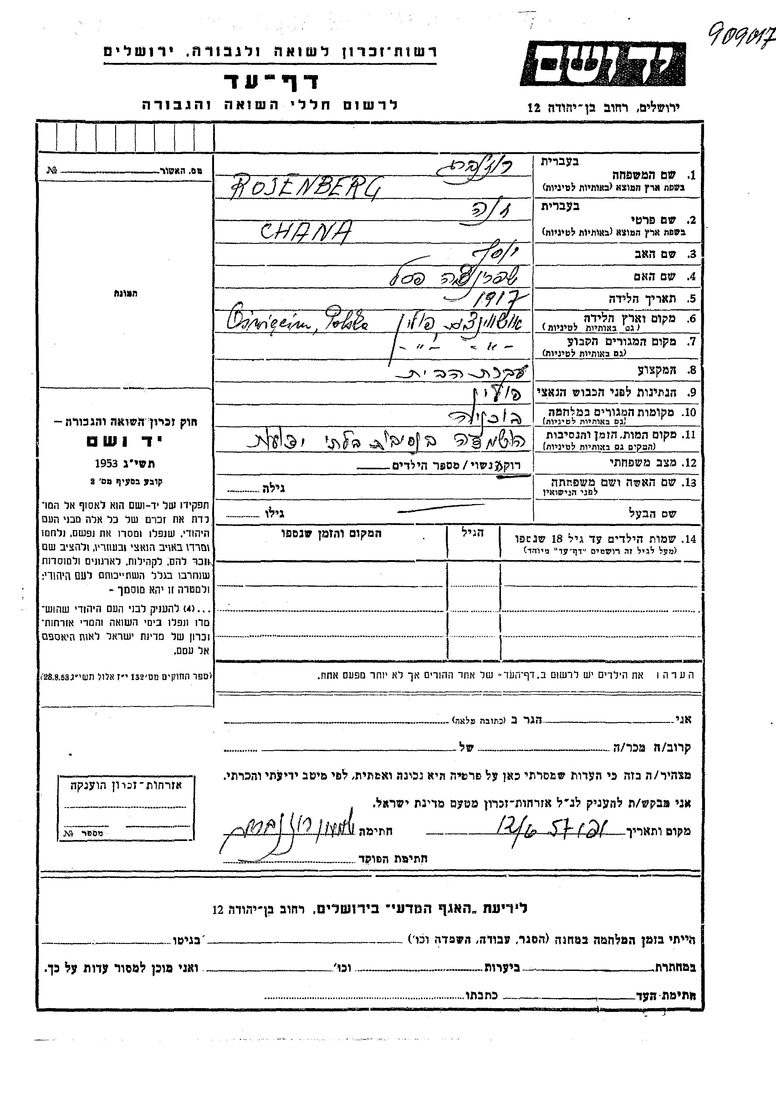 Rosenberg חנה 1917 Oświęcim, פולין דף-עד