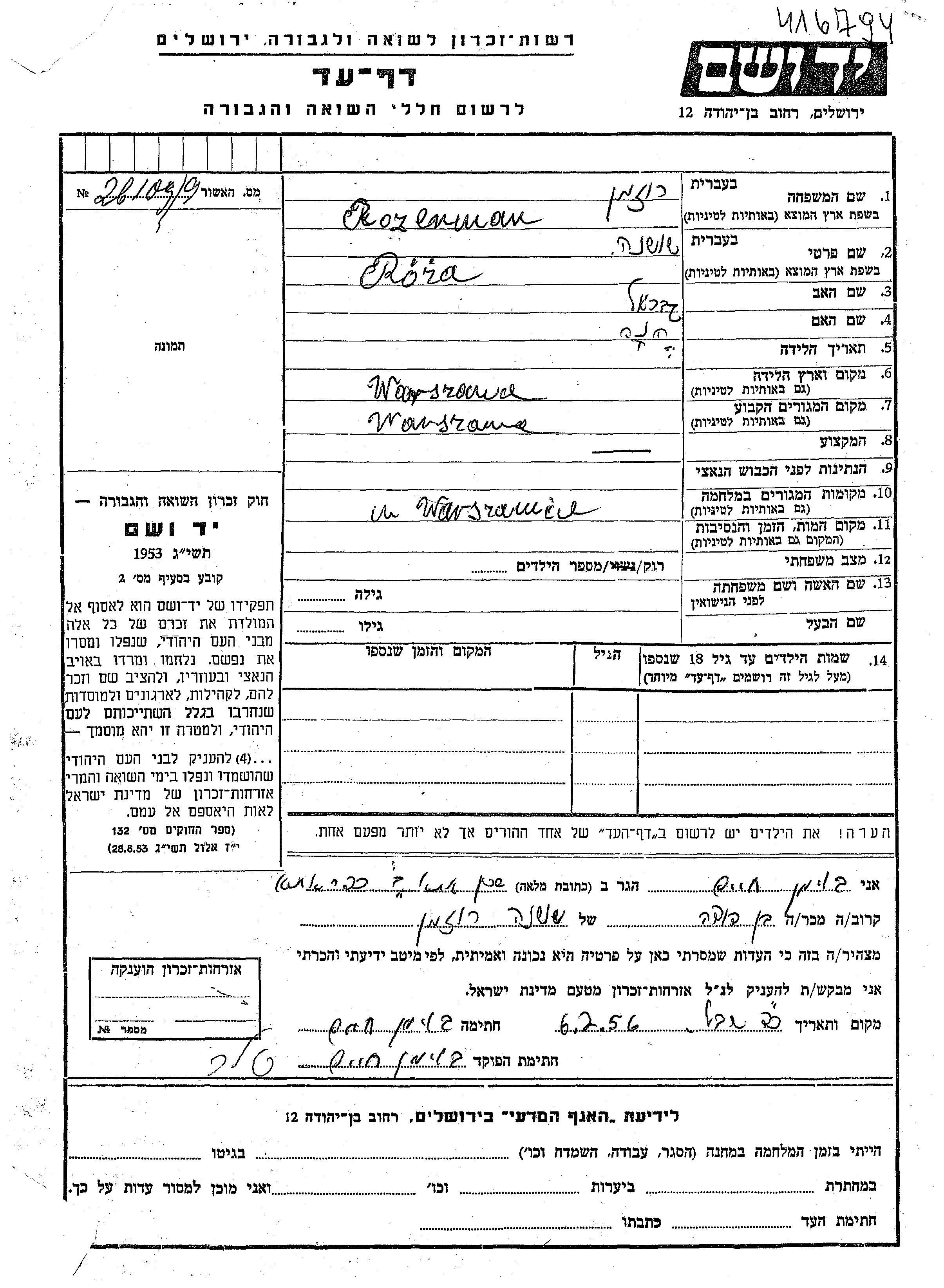 רוזה שושנה רוזנמן רוזמן נולדה בWarsaw שבפולין לגבריאל וחנה. היא היתה רווקה. לפני מלחמת העולם השניה התגוררה בWarsaw שבפולין. בזמן המלחמה היא היתה בWarsaw שבפולין. רוזה שושנה נרצחה בשואה.
