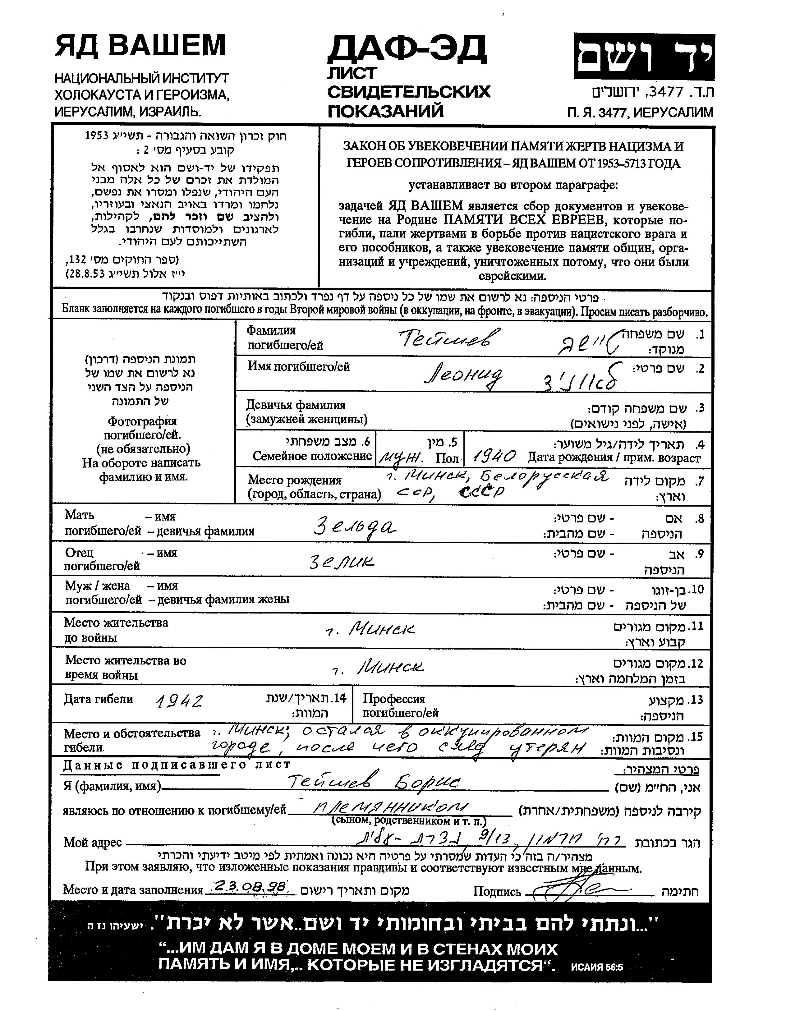 Teishev לאוניד 1940 Minsk, ביאלורוסיה (ברה"מ) דף-עד