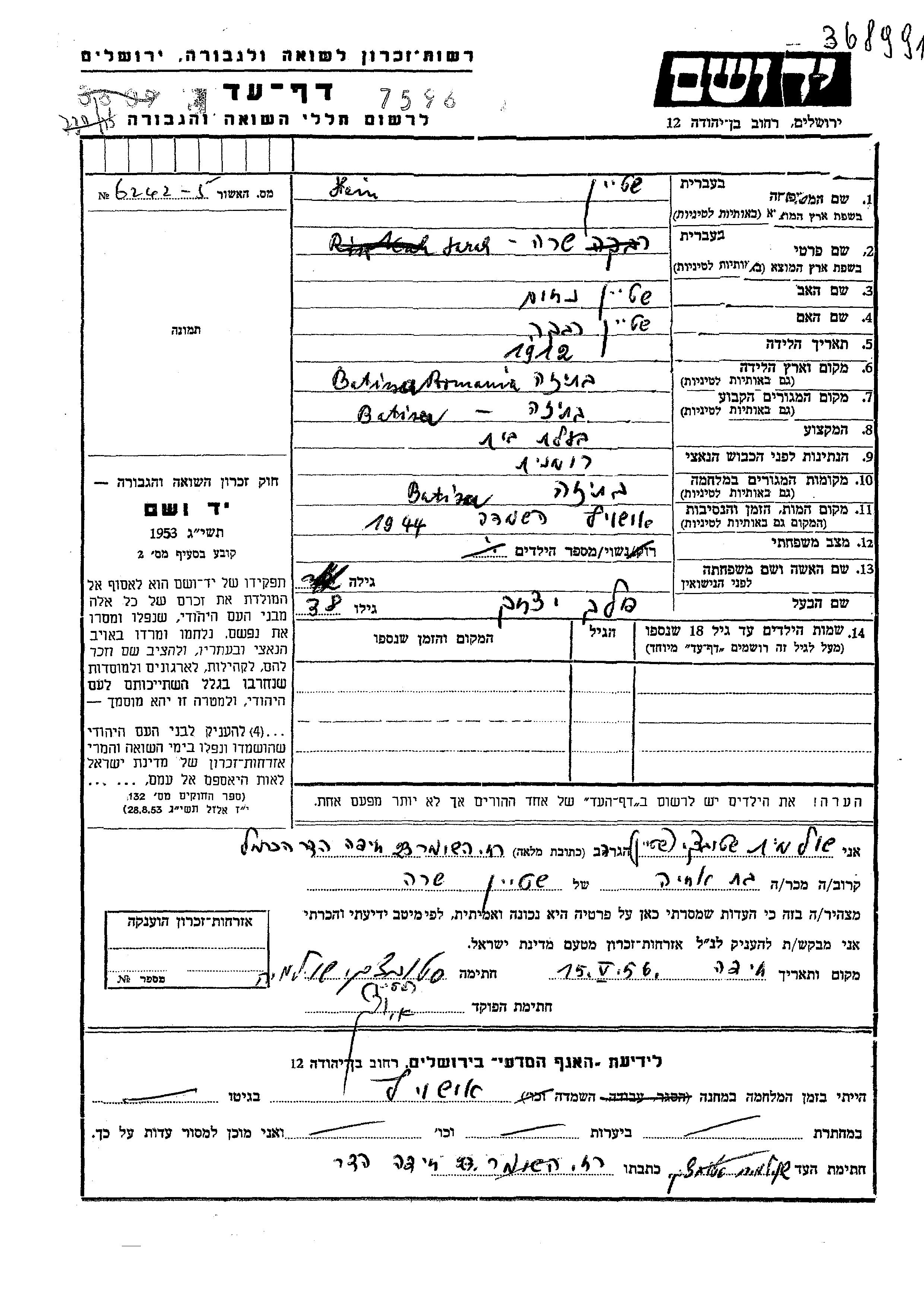 יד ושם - המפעל להנצחת השמות בדפי עד