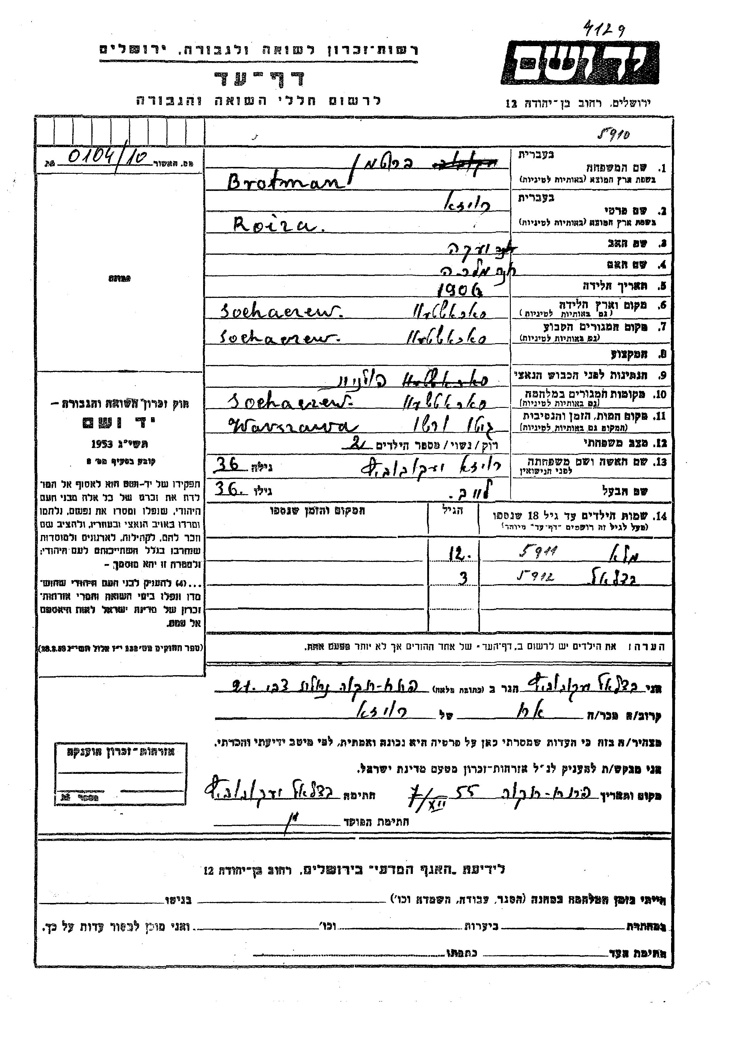 ברוטמן רויזה 1906 Sochaczew, פולין דף-עד