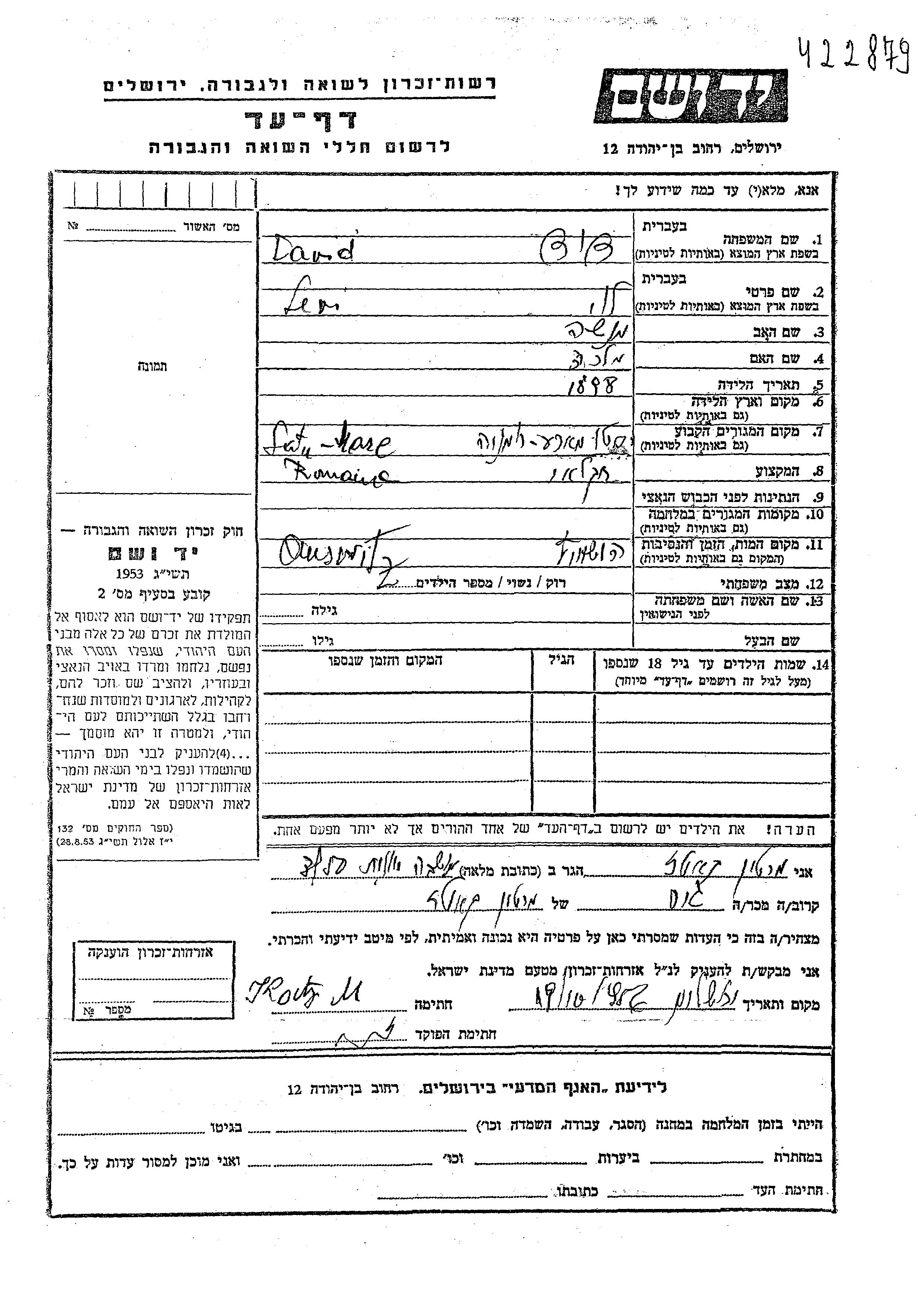 דוד לוי 1898 Satu Mare, רומניה דף-עד