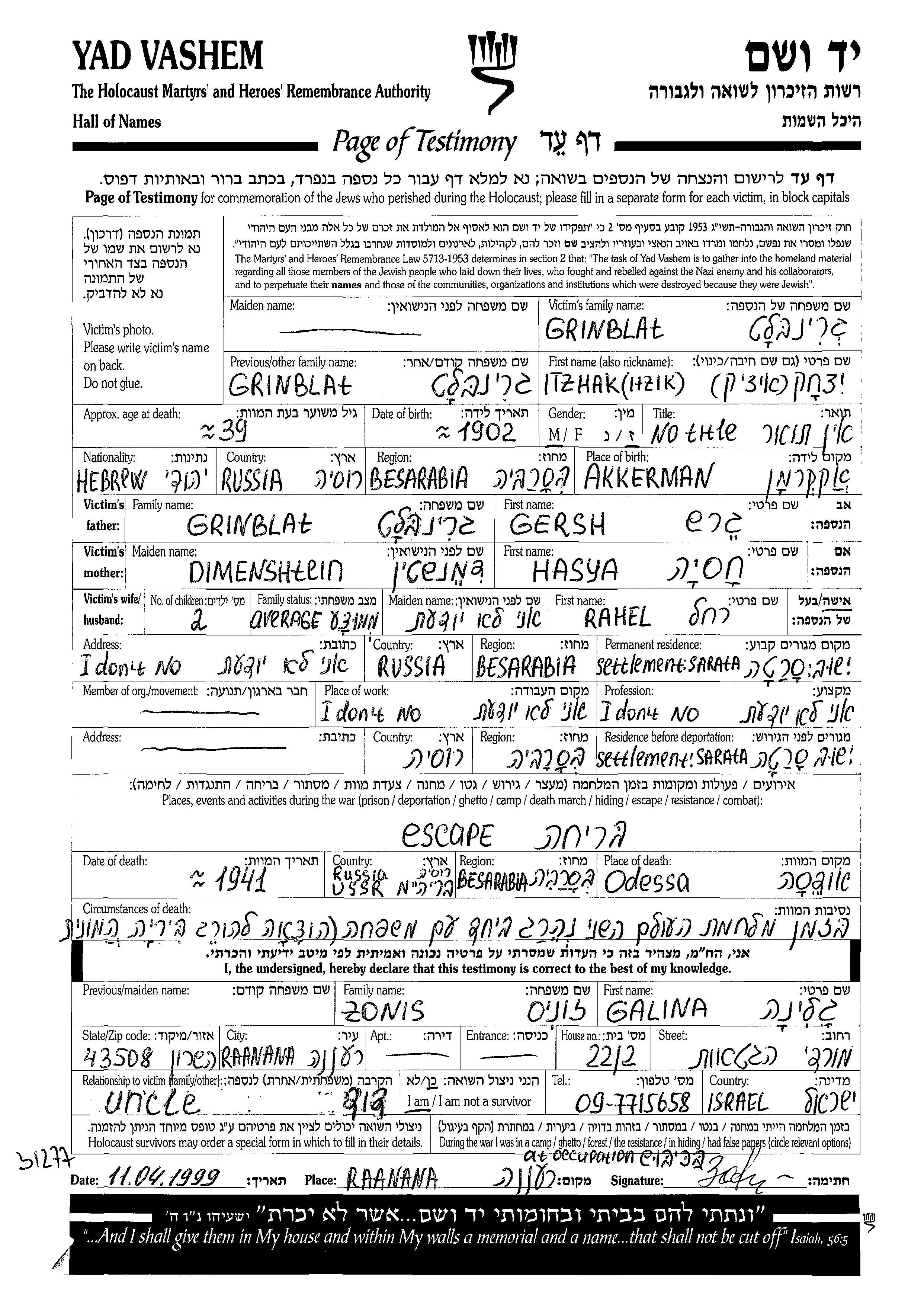גרינבלט Itzhak 1902 Sarata, רומניה דף-עד